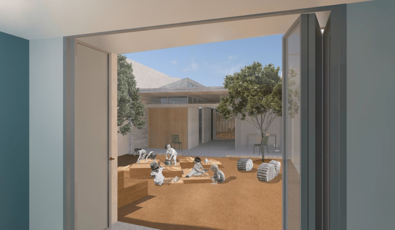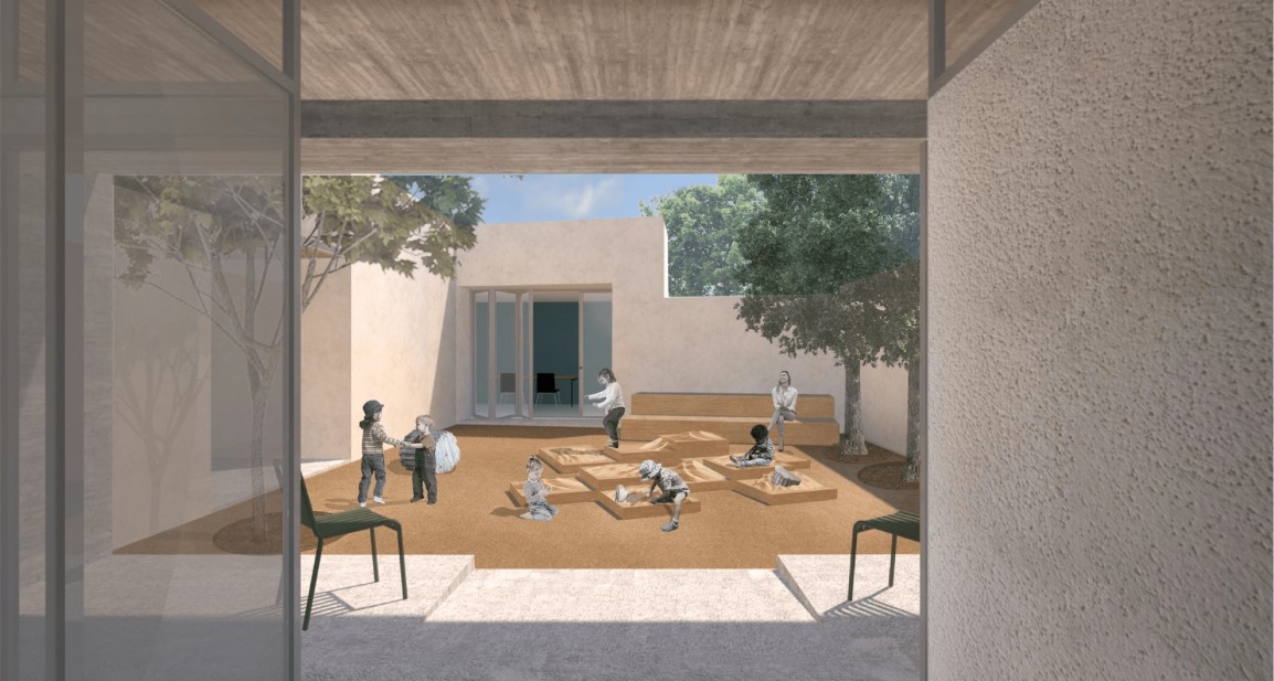 Ο χώρος πολλαπλών χρήσεων χωροθετείται στο πίσω τμήμα του κτηρίου, έχοντας αυτοτέλεια και εκμεταλλευόμενος το άνοιγμα της στέγης, με θέα προς την Ακρόπολη. Στις προτεινόμενες χρήσεις, βασική είναι αυτή της δημιουργικής απασχόλησης παιδιών ηλικίας μέχρι 12 ετών, που απευθύνεται σε γονείς που θέλουν να αφήσουν, τα μικρότερα σε ηλικία, παιδιά (ενδεικτικές ηλικίες 3-6 ετών) κατά την επίσκεψή τους στον αρχαιολογικό χώρο, είτε σε σχολεία (ενδεικτικές ηλικίες 6-12 ετών), από την Ελλάδα ή το εξωτερικό. Ο κεντρικός άξονας των διδακτικών-εκπαιδευτικών προγραμμάτων θα είναι αρχαιογνωστικός με έμφαση στους εγγύς αρχαιολογικούς χώρους. Το οικόπεδο μετατρέπεται σε υπαίθριο χώρο πολλαπλών χρήσεων,  με εκπαιδευτικό και πολιτιστικό χαρακτήρα, ο οποίος θα μπορεί να λειτουργεί αυτόνομα είτε και σε σύνδεση με το κτήριο της Αρεοπαγίτου.