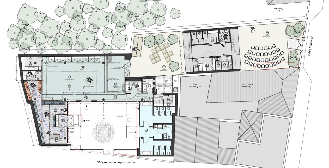 Βασικές αρχές σχεδιασμού του έργου είναι η διατήρηση της μορφολογίας και του χαρακτήρα του κτηρίου, επί της Αρεοπαγίτου 18-20, αλλά και του υπαίθριου χαρακτήρα, στο οικόπεδο επί της Βύρωνος 20. Με την ολοκλήρωση του έργου, οι δύο χώροι αποδίδονται στο κοινό, καλύπτοντας λειτουργικές ανάγκες του αρχαιολογικού χώρου της Ακρόπολης, ενώ συγχρόνως αναβαθμίζουν την εμπειρία των επισκεπτών.