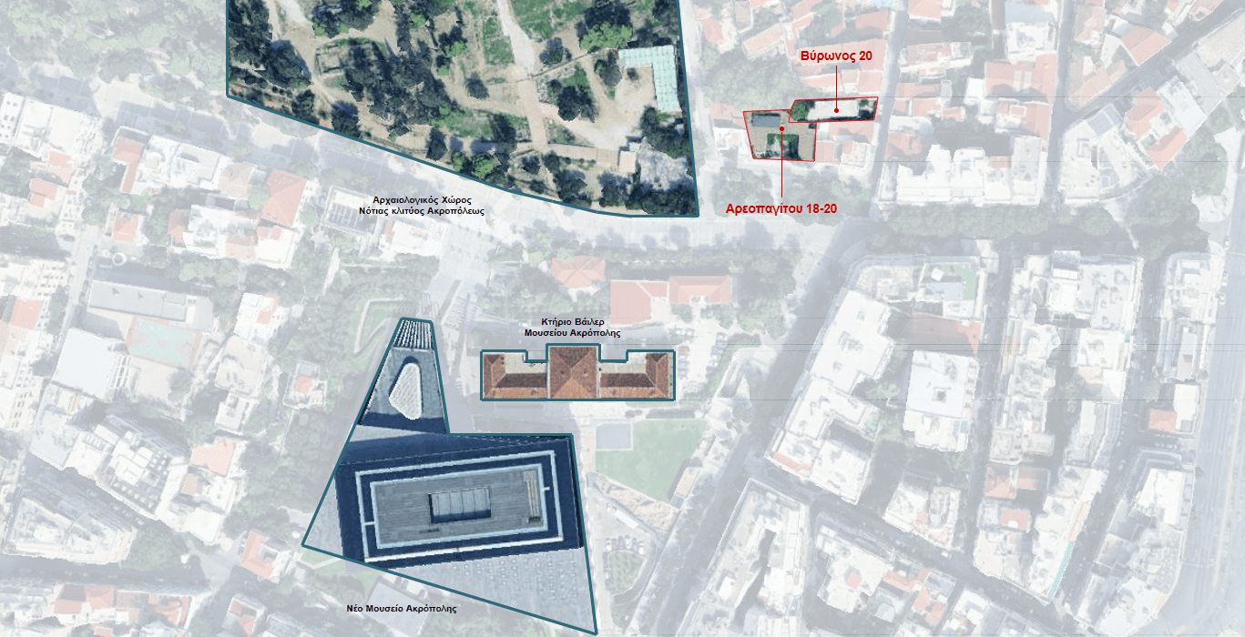 Άποψη της θέσης των ακινήτων ως προς τον αρχαιολογικό χώρο της Ακρόπολης | Πηγή: ΥΠΠΟ