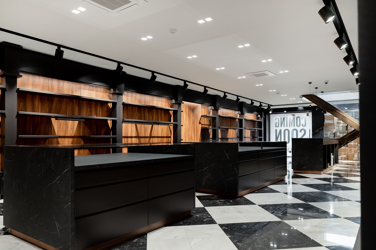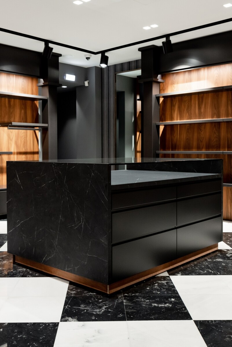 Κατασκευή επίπλων – ραφιών: DISETO (Σεϊντής Δημήτρης), Επιφάνειες ειδικά υλικά: KANELLI SA – CARTEGO / ARCHITEXTURE – AGGELADAKIS MATERIAL CONCEPT