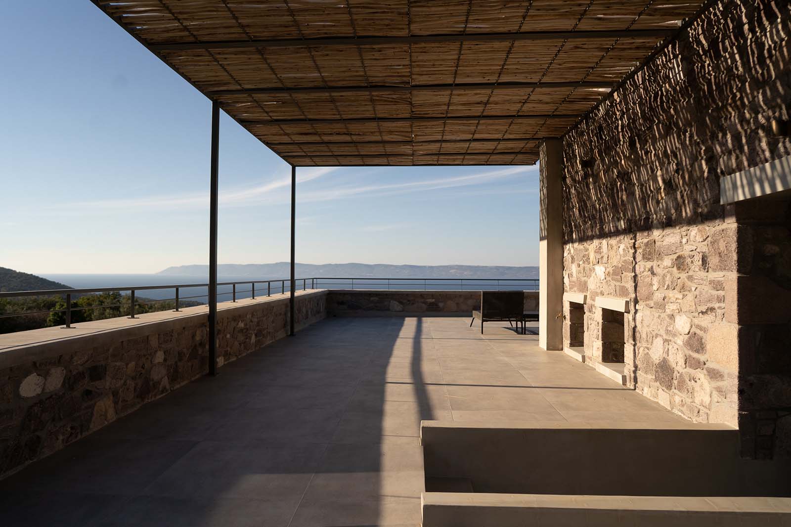 The terrace of the first floor offers unobstructed views, not only to the sea, but also to Sykamia, which is perched on the opposite hill. The design of the building reflects the simplicity of the place and the owners’ need for privacy.