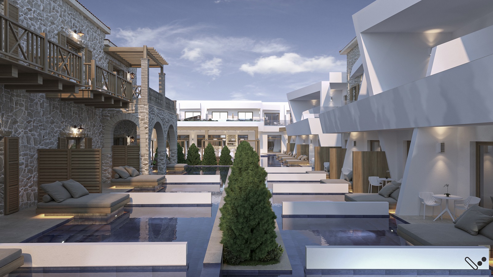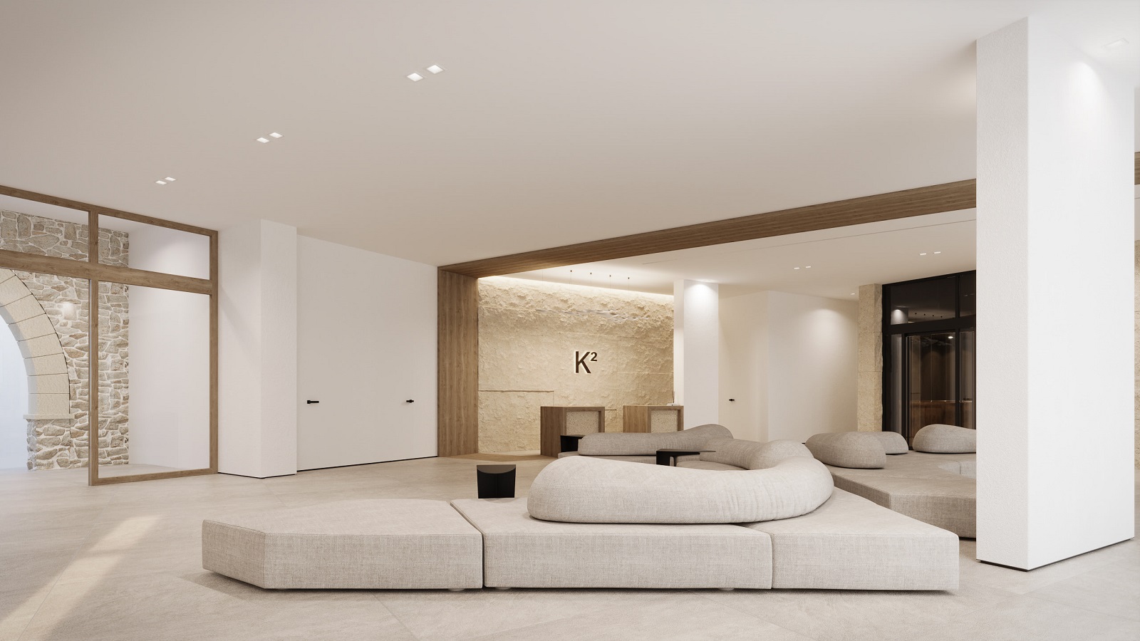 Τίτλος έργου: K2 Hotel, Τυπολογία: Ξενοδοχειακό συγκρότημα 5 αστέρων, Τοποθεσία: Τσιλιβί Ζακύνθου, Αρχιτεκτονική μελέτη – Interior Design – Αρχιτεκτονική τοπίου – Μελέτη φωτισμού: Dedalo Progetti / Volineos LTD, Γενική επίβλεψη: Dedalo Progetti, Εμβαδόν: 3.920 τ.μ. δομημένης επιφάνειας σε οικόπεδο 5.000 τ.μ., Κατάσταση: Μελέτη, Κείμενο παρουσίασης – Φωτορεαλιστικές απεικονίσεις: Dedalo Progetti / Volineos LTD