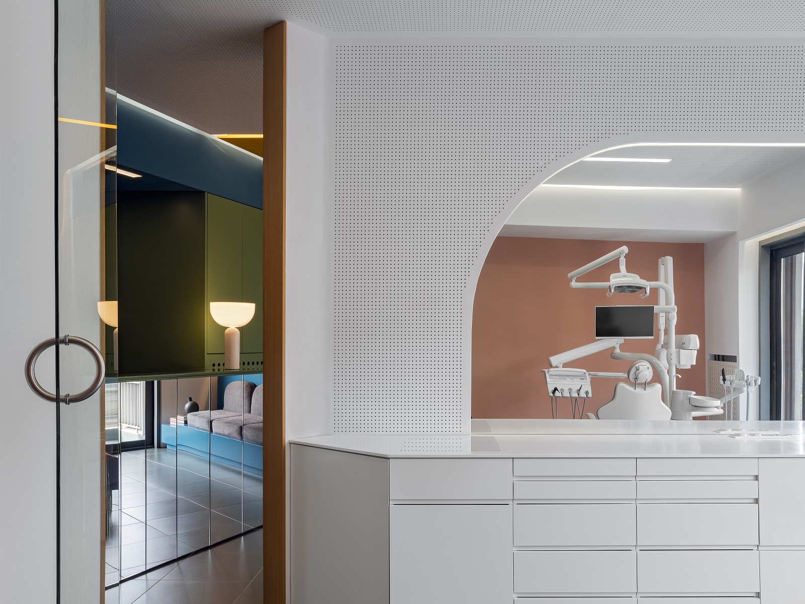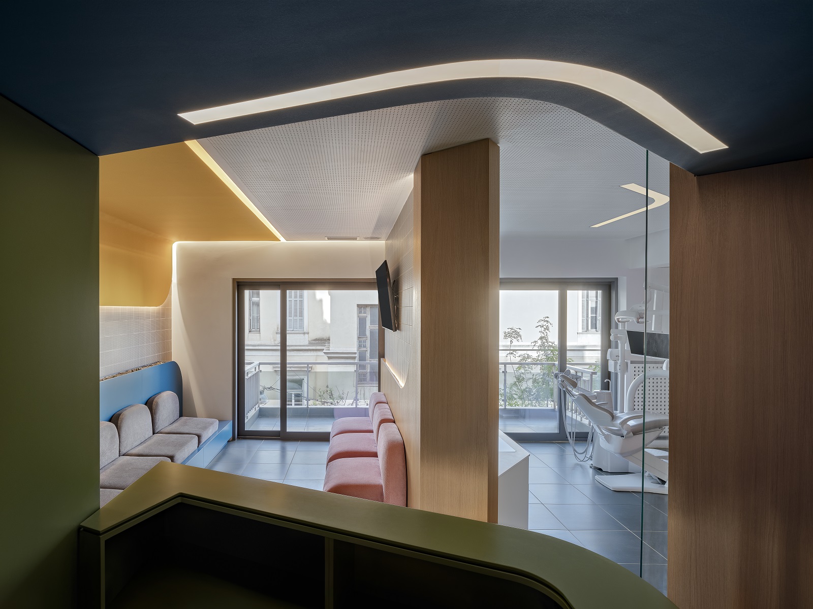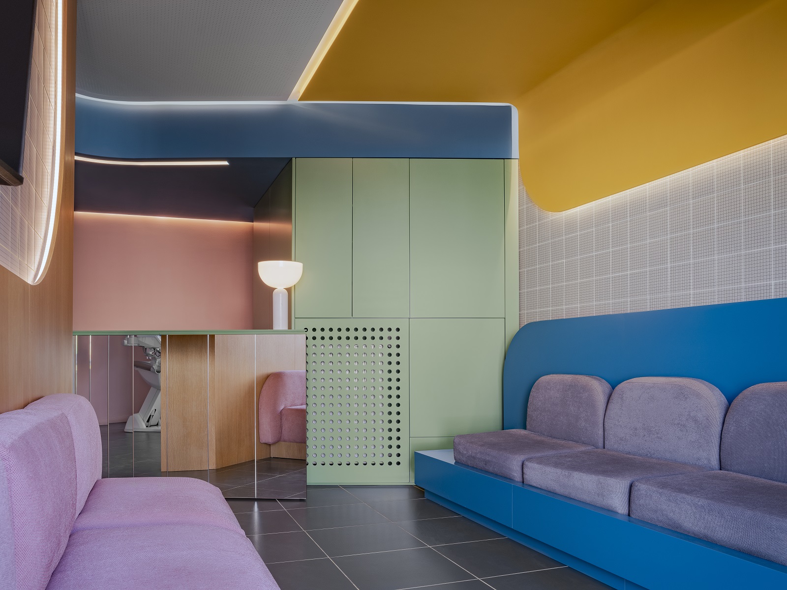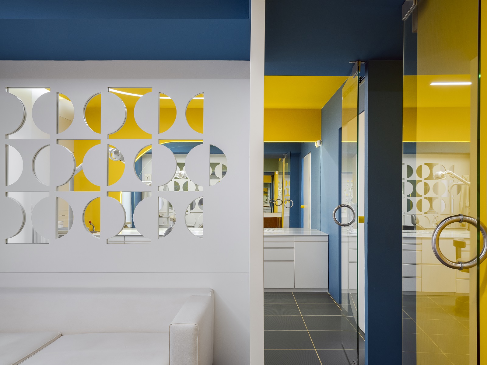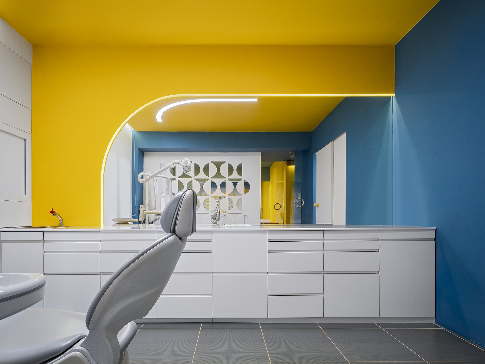 Πολύχρωμο, τολμηρό, καινοτόμο. Είναι τρία επίθετα που θα μπορούσαν να περιγράψουν το οδοντιατρείο σχεδιασμένο από την αρχιτέκτονα Μπέλα Λουλουδάκη στο Κολωνάκι. Γιατί, όπως είπε ο Henri Matisse, «το χρώμα πάνω απ’ όλα, ίσως περισσότερο και από το σχέδιο, είναι μια απελευθέρωση». Και πόσο απελευθερωτικό είναι να προσεγγίζεις τον σχεδιασμό ενός οδοντιατρείου, που συμβατικά θεωρείται ένας ψυχρός και απωθητικός χώρος, αντλώντας απεριόριστα από την χρωματική παλέτα.