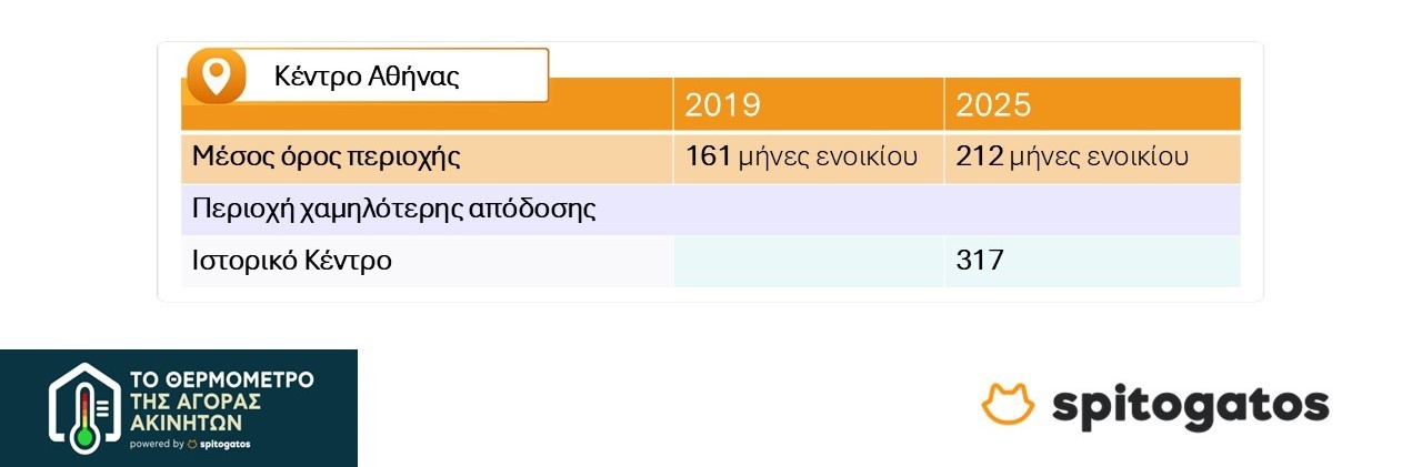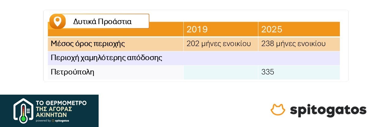 • Χαμηλότερη απόδοση το 2025: Πετρούπολη, με 335 ενοίκια
