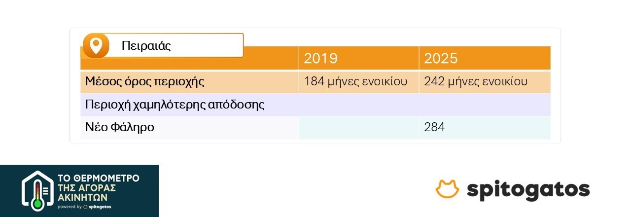 • Χαμηλότερη απόδοση το 2025: Δραπετσώνα, με 332 ενοίκια