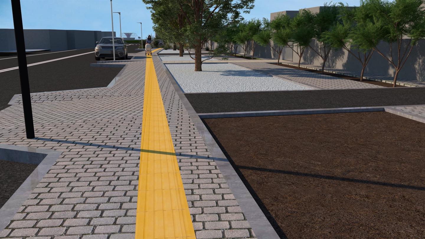 • Για την διαμόρφωση των διαδρομών περιπάτου επιλέχθηκαν επιστρώσεις ψυχρών κυβολίθων με βάση – υπόβαση από υδατοπερατά υλικά εξασφαλίζοντας ταυτόχρονα την πρόσβαση σε εμποδιζόμενα άτομα με διάστρωση πλακών ΑμεΑ και διαμορφώσεις τεσσάρων (4) διαβάσεων.