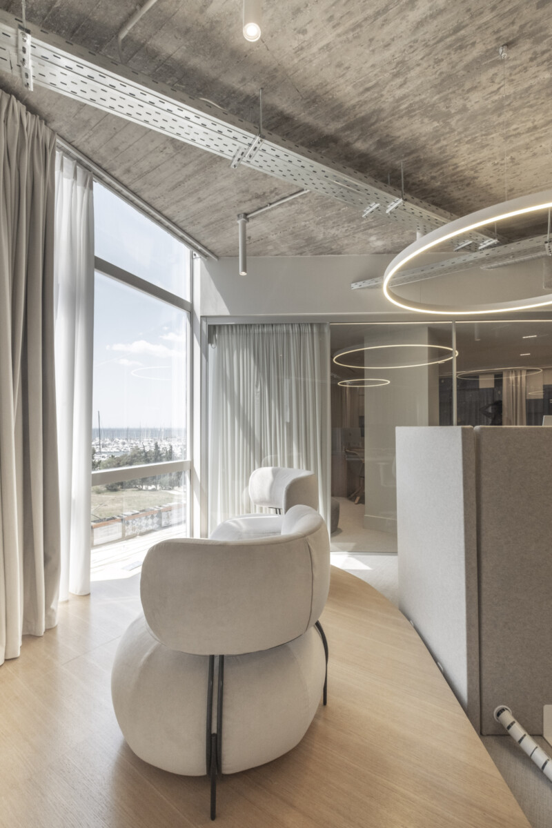 The space management was based on the Open Plan concept. This unification allows the area to function as a cohesive whole, enabling all sections to equally benefit from the sea view. This decision was crucial both in defining the separation of activities and in determining the routing of service networks.
