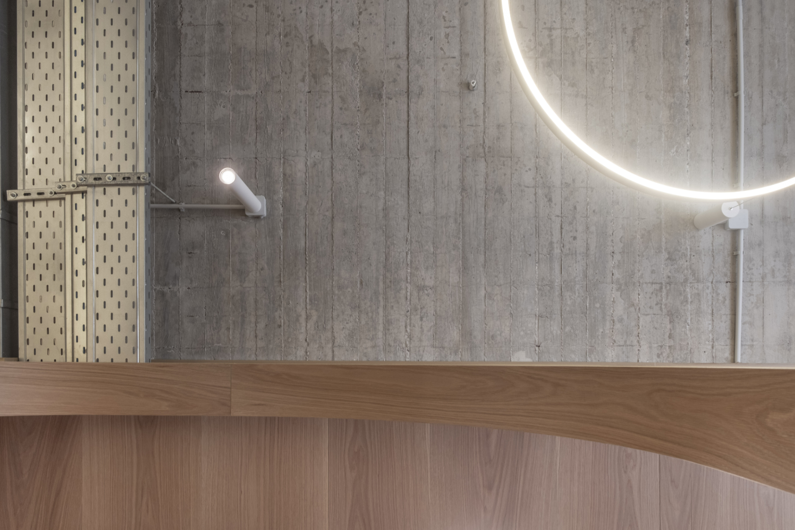 The central concept was developed around the expression “That means Business”. Light color tones, wood cladding, marble furniture, an artwork that dialogues with the space, and exposed concrete on the ceiling are the elements that compose the atmosphere and create subtle tensions between luxury and an industrial feel.