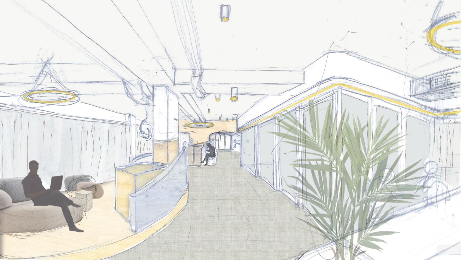 Η κεντρική ιδέα αναπτύχθηκε γύρω από την έκφραση “That meens Business”. Ανοιχτόχρωμοι χρωματισμοί, επένδυση ξύλου, μαρμάρινα έπιπλα, ένα έργο τέχνης που συνομιλεί με τον χώρο και εμφανές μπετόν στην οροφή είναι τα στοιχεία που συνθέτουν την ατμόσφαιρα του χώρου και δημιουργούν μικρές εντάσεις μεταξύ πολυτέλειας και βιομηχανικής αίσθησης.