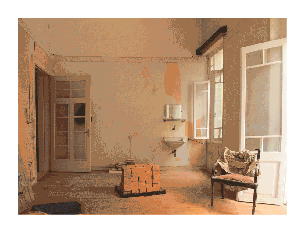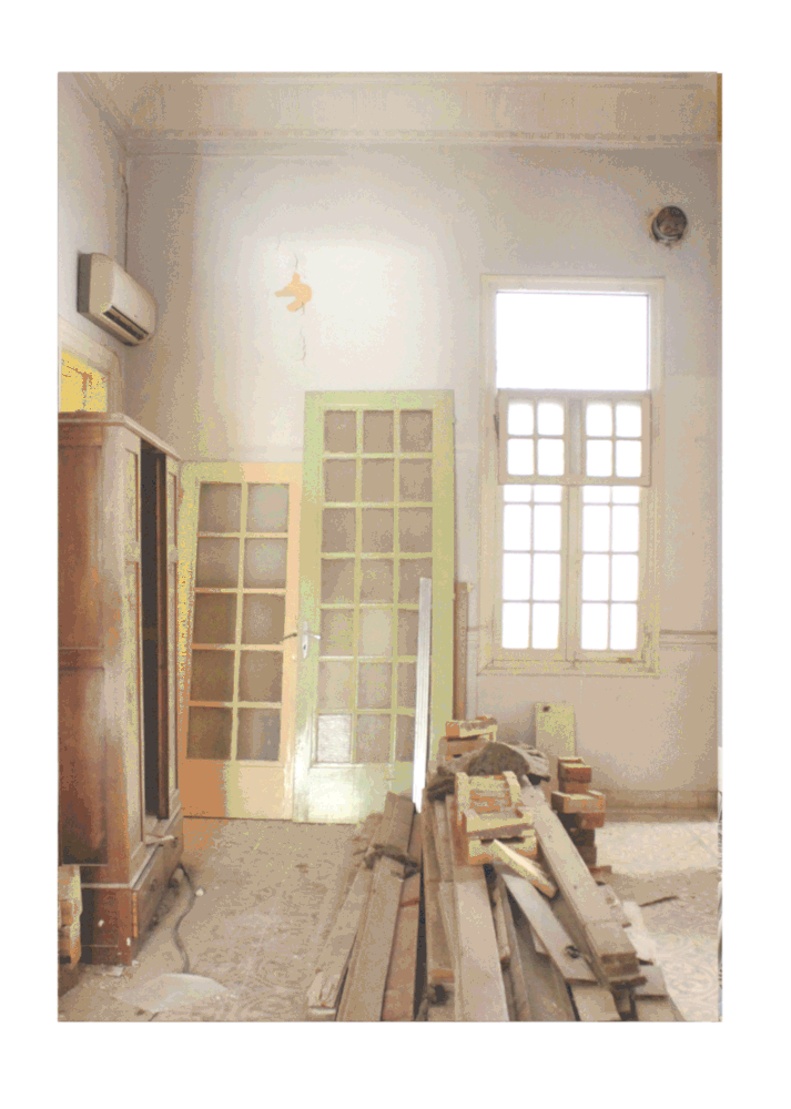 Στο κτίριο έχουν γίνει επισκευές και επεμβάσεις σε προηγούμενες φάσεις, με πιο πρόσφατες το διαχωρισμό του ισογείου σε δύο διαμερίσματα και τη συνολική αποκατάσταση των όψεων. Σε συνέχεια αυτών, οι cadu architects ανέλαβαν την αποκατάσταση του ισογείου και τη μετατροπή του σε ένα σύγχρονο διαμέρισμα για βραχυπρόθεσμη μίσθωση.