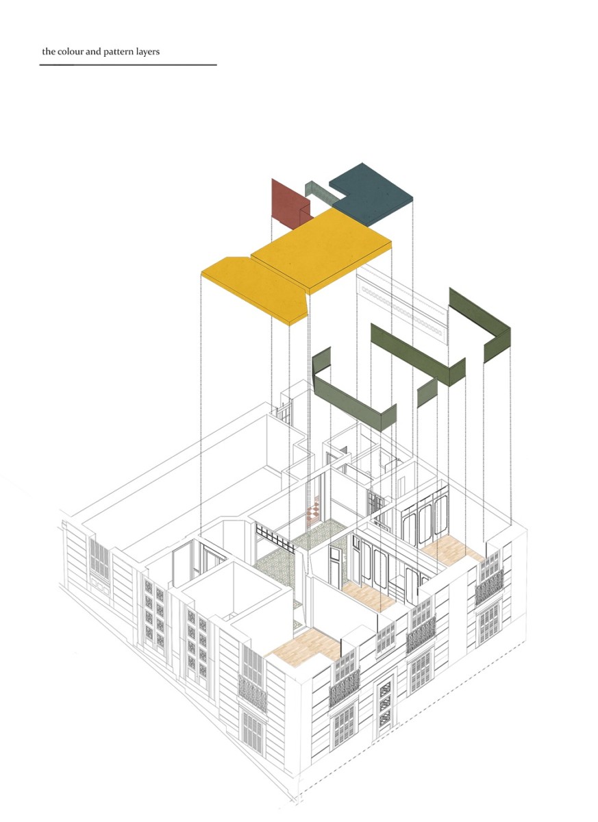 Η επέμβαση επιδιώκει να διηγηθεί την ιστορία του κτιρίου. Αυτό ήταν ένα από τα βασικά ζητούμενα της σημερινής ιδιοκτήτριας: το κτίριο αποτελεί το πατρικό σπίτι της οικογένειας και στο σημερινό σαλόνι του έχει φιλοξενήσει το πρώτο οδοντιατρείο του πατέρα της τη δεκαετία του 1950.