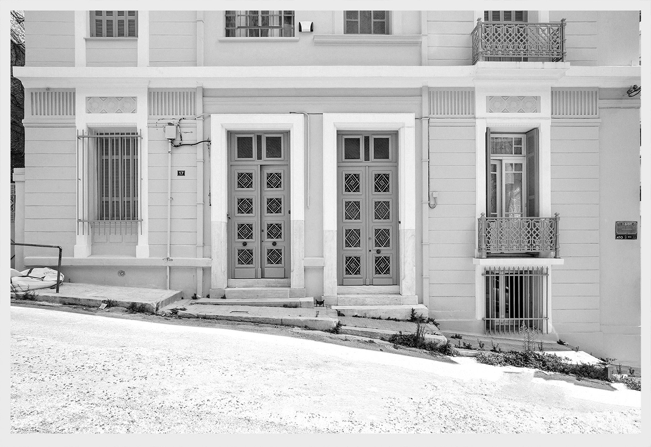 The listed house sits on the corner of a sloppy road in the area of Koukaki in Athens. It was originally built in the mid 1920’s as a one-storey house with basement and a couple of years later another storey was added.