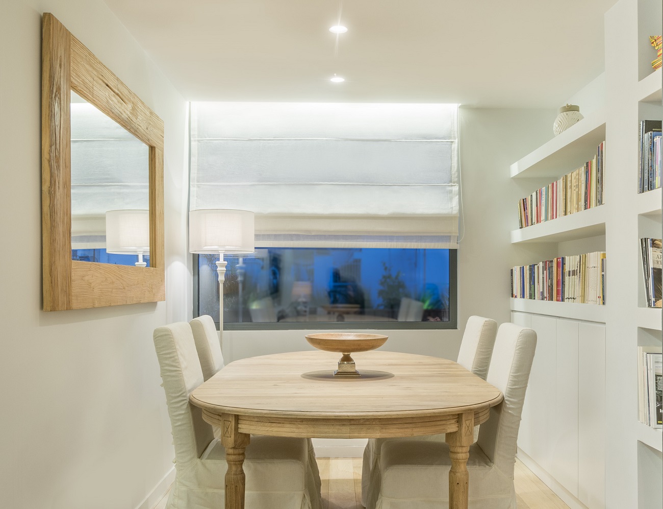 Χαρακτηριστικό στοιχείο του διαμερίσματος είναι τα μεγάλα ανοίγματα που δημιουργήθηκαν στους δυο φωταγωγούς του, τα οποία αφήνουν το φως να διεισδύσει στο εσωτερικό, δημιουργώντας φωτεινές εντάσεις.
