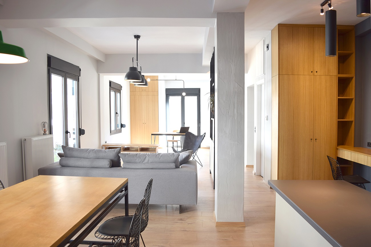 Project Title: Apartment in Kallimarmaro, Location: Kalimarmaro – Athens – Greece, Design & Construction Management: Panagiotis Papanikolaou, Area: 112 m², Year of Design: 2019, Year of Construction: 2019, Text description: Panagiotis Papanikolaou, Photography: Panagiotis Papanikolaou