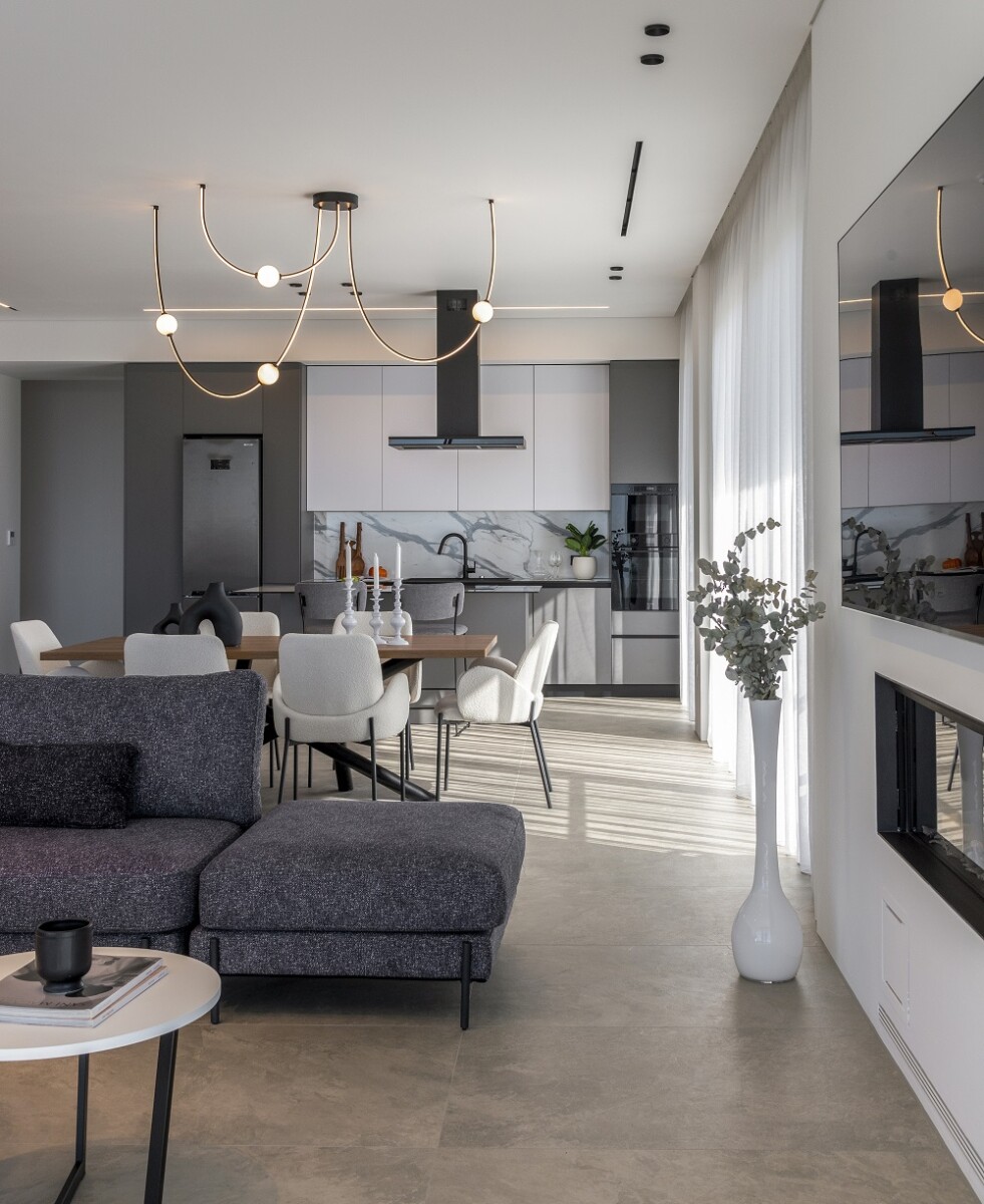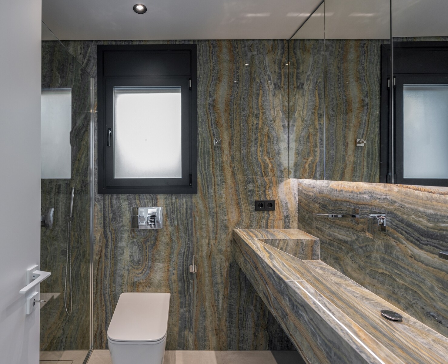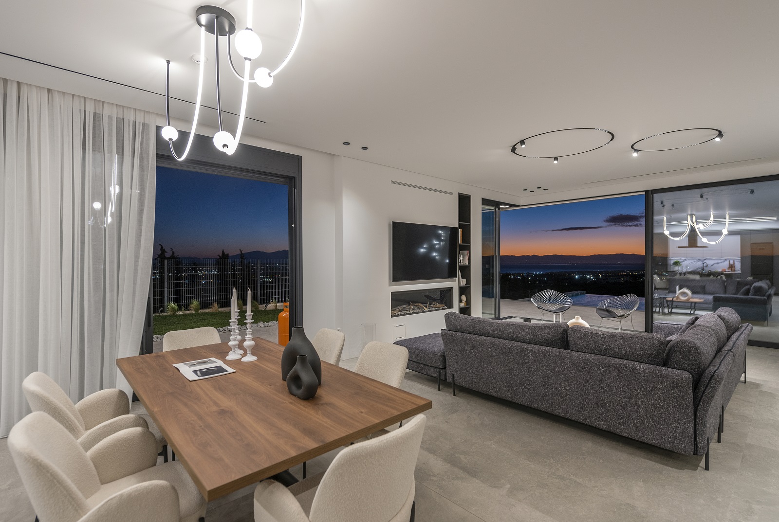 Project title: Residence in Panorama, Typology: Private residence, Location: Panorama – Thessaloniki – Greece, Architectural design: Skarlakidis Architecture Studio, Lead architect: Stefanos Skarlakidis, Collaborator Architect: Alexandra Tripsiani, Structural engineering: Margarita Karli, E/M engineering: Konstantinos Dardamanis, Supervision: Apostolos Tzikalagias – Stefanos Skarlakidis, Construction: Tzikalagias Construction, Gross built area: 370sqm, Design date: October – December 2022, Construction date: 2023 – 2024, Text description: Stefanos Skarlakidis, Photography: studiovd.gr / Nikos Vavdinoudis – Christos Dimitriou