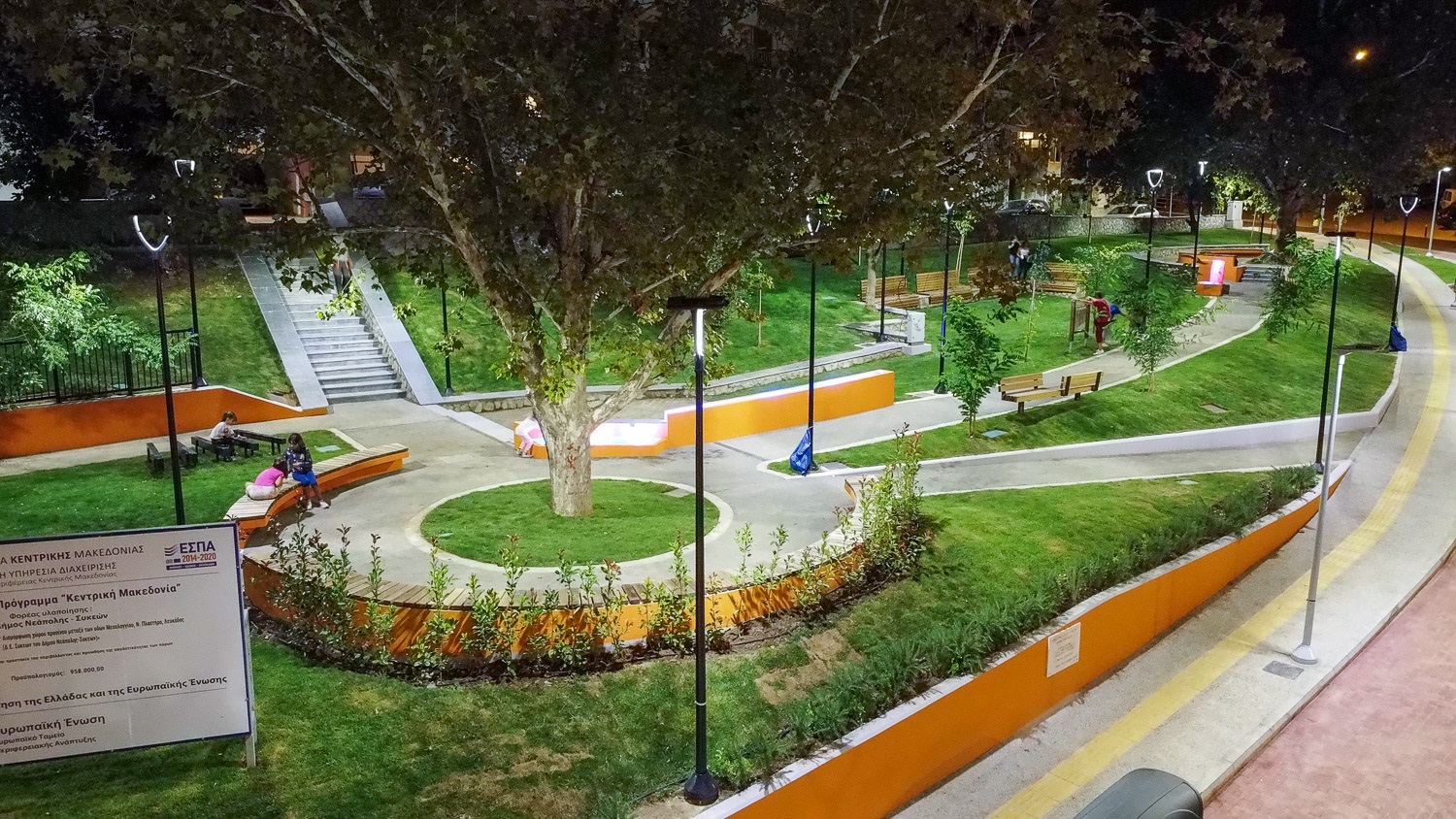 Το συνολικό εμβαδό της έκτασης είναι 3.014,74 τμ. Από τα οποία τα 1.907,74 τ.μ. αποτελούν χώρο πρασίνου έχοντας φυτευτεί 40 νέα μεγάλα δένδρα και 250 θάμνοι, καλλωπιστικά φυτά και αναρριχώμενα, ενώ εγκαταστάθηκαν και μουσικά όργανα (μεταλλόφωνο, λιθόφωνο, όργανα μεταφοράς ήχου). Την όμορφη και πρωτοποριακή εικόνα, συμπληρώνει ένα σιντριβάνι με παγκάκια, πέργκολες και ειδικούς διαδρόμους.