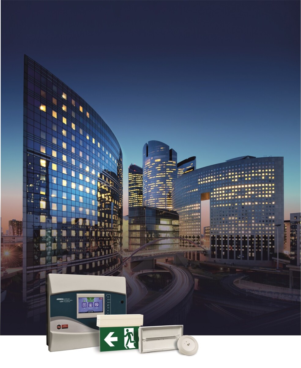 • Διευθυνσιοδοτούμενα συστήματα: Πρόκειται για ένα δικτυωμένο σύστημα φωτισμού ασφαλείας όπου κάθε φωτιστικό φέρει μοναδική διεύθυνση μέσω ενσωματωμένου module και επικοινωνεί με έναν κεντρικό ελεγκτή (πίνακα) μέσω γραμμής bus. To γεγονός αυτό επιτρέπει στον κεντρικό πίνακα ελέγχου να παρακολουθεί τη λειτουργική κατάσταση του συστήματος σε πραγματικό χρόνο, να καταγράφει βλάβες ή πτώσεις τάσης, καθώς και να ενεργοποιεί αυτοματοποιημένες δοκιμές.