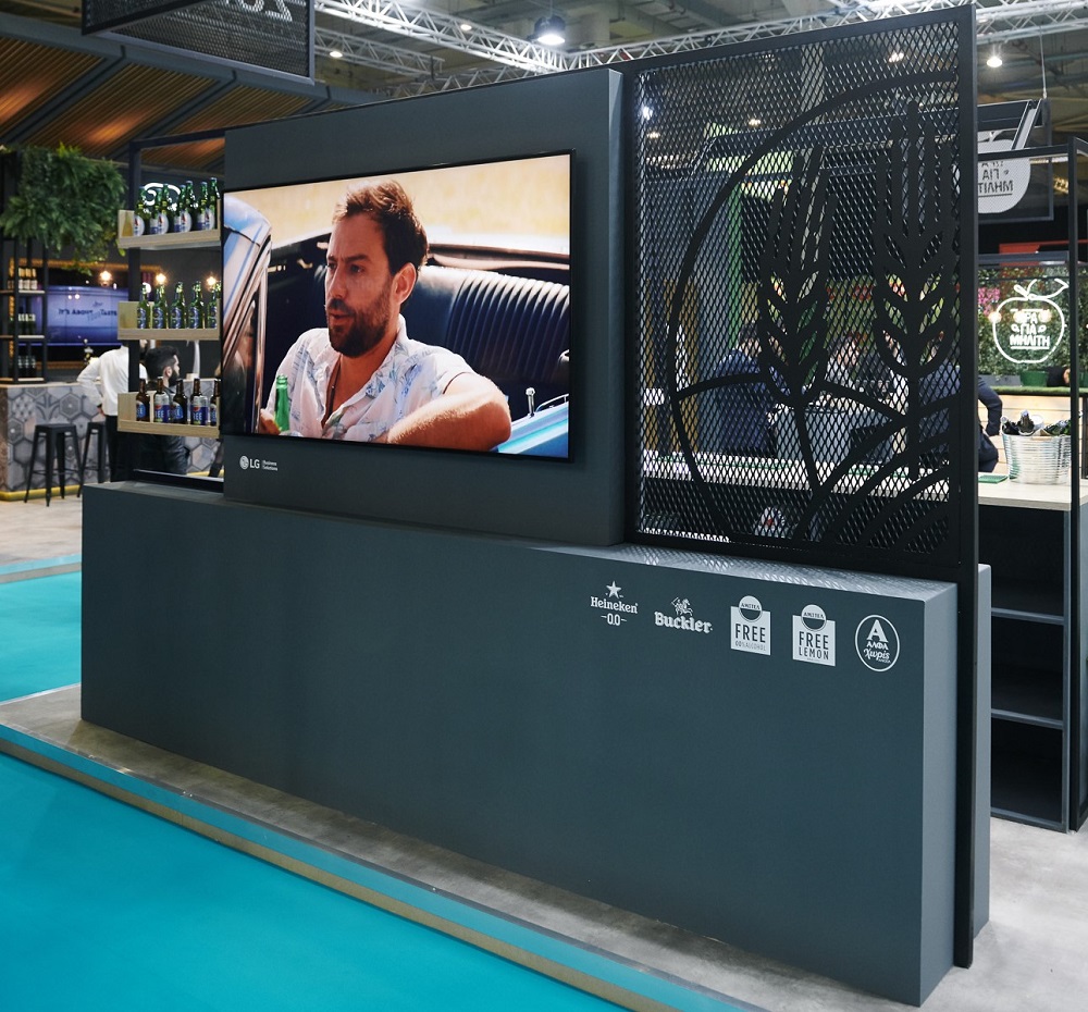 Συγκεκριμένα, το ειδικά διαμορφωμένο BeerBar στο περίπτερο της Αθηναϊκής Ζυθοποιίας περιλάμβανε ένα LGOLEDVideoWall της σειράς EV5 αποτελούμενο από τρεις οθόνες 55 ιντσών εγκατεστημένες σε σειρά με κάθετη διάταξη δημιουργώντας ένα πρωτοποριακό σενάριο τοποθέτησης video wall που θύμιζε vintage πίνακα ζωγραφικής.