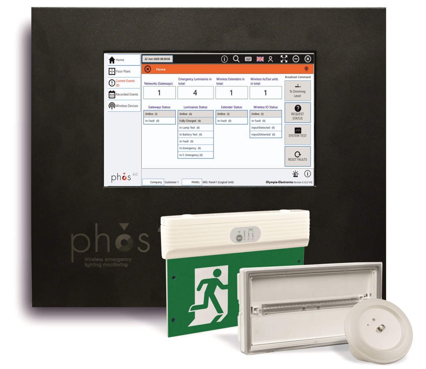 Καμία κτιριακή εγκατάσταση δεν είναι όμοια με την άλλη και ο φωτισμός ασφαλείας μπορεί να έχει επίδραση σε ή να επηρεάζεται από άλλα συστήματα, όπως συστήματα ελέγχου κοινού φωτισμού ή συστήματα ασφαλείας. Συγκεκριμένα, οι μεγάλες εμπορικές και ξενοδοχειακές εγκαταστάσεις χρησιμοποιούν όλο και συχνότερα διευθυνσιοδοτούμενα συστήματα φωτισμού, ελέγχοντας την εγκατάσταση είτε μέσω dedicated συστημάτων, όπως το σύστημα ενσύρματου ελέγχου GR-7500/GR-6500 ή το σύστημα ασύρματου ελέγχου Phos 4.0 της OlympiaElectronics είτε στα πλαίσια ενός πιο κεντροποιημένου συστήματος ελέγχου όπως το KNX, με χρήση πρωτόκολλου DALI (Digital Addressable Lighting Interface).