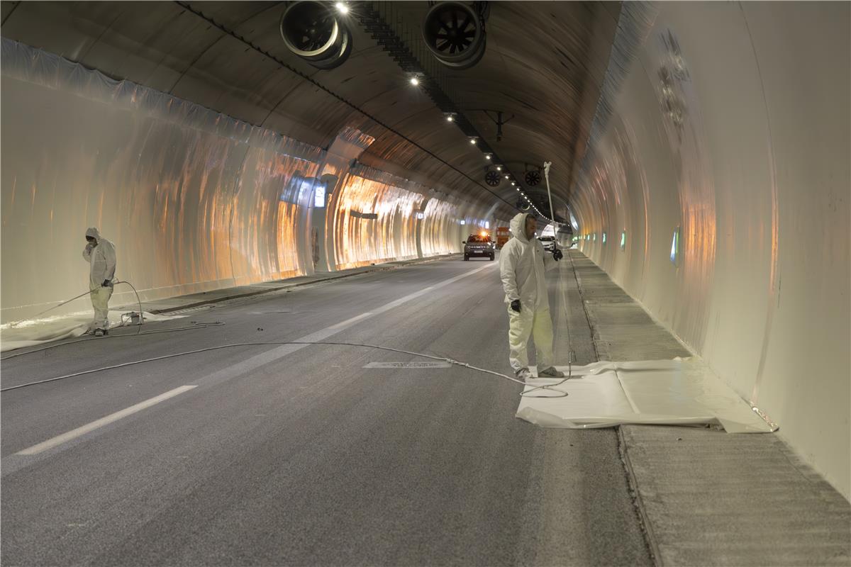 Παράλληλα, στο πλαίσιο της ίδιας επένδυσης, πραγματοποιήθηκε επαναχρωματισμός του εσωτερικού των σηράγγων με ένα καινοτόμο, φωτοκαταλυτικό χρώμα υψηλής ανακλαστικότητας (Vitex FOS).