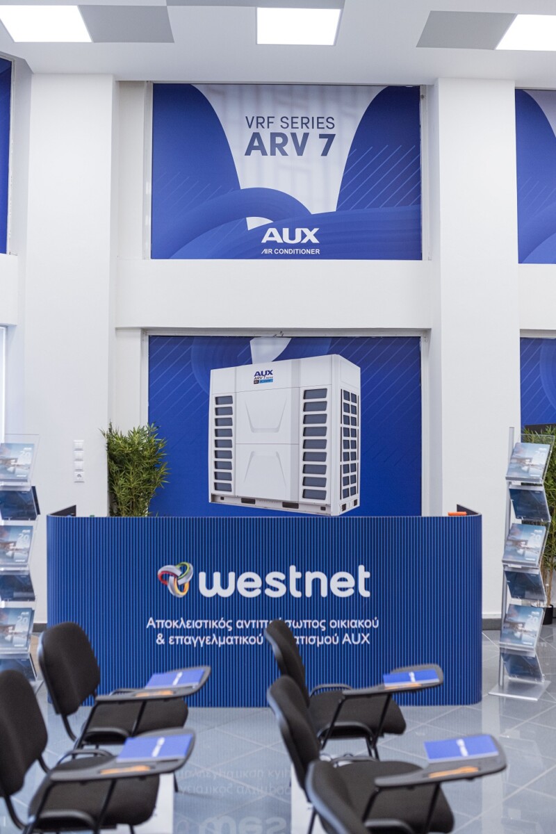 Ως αποκλειστικός αντιπρόσωπος της AUX στην Ελλάδα, η Westnet εγκαινιάζει το πρώτο «AUX Experience Center» στην Αθήνα, ένα σύγχρονο εκπαιδευτικό κέντρο που έχει σχεδιαστεί για να προσφέρει εξειδικευμένη εκπαίδευση και υποστήριξη στους επαγγελματίες του κλάδου της θέρμανσης/ψύξης, ενισχύοντας την τεχνογνωσία και τις δεξιότητές τους στην εγκατάσταση, λειτουργία και συντήρηση κλιματιστικών, αντλιών θερμότητας και φωτοβολταϊκών συστημάτων.