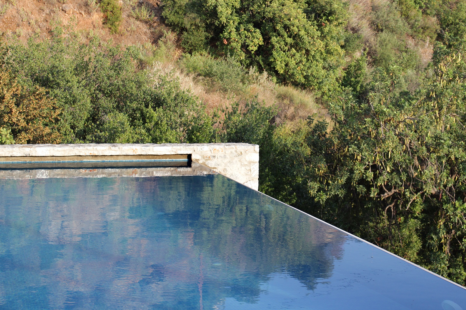 The houses are organized in two distinct stone buildings – towers, thus fragmenting the overall volume of the building into smaller ones, which approximate the traditional architecture, the scale of the landscape and of man. These two austere volumes are interwoven with the semi-outdoor and outdoor spaces that surround them, following the slope of the ground.
