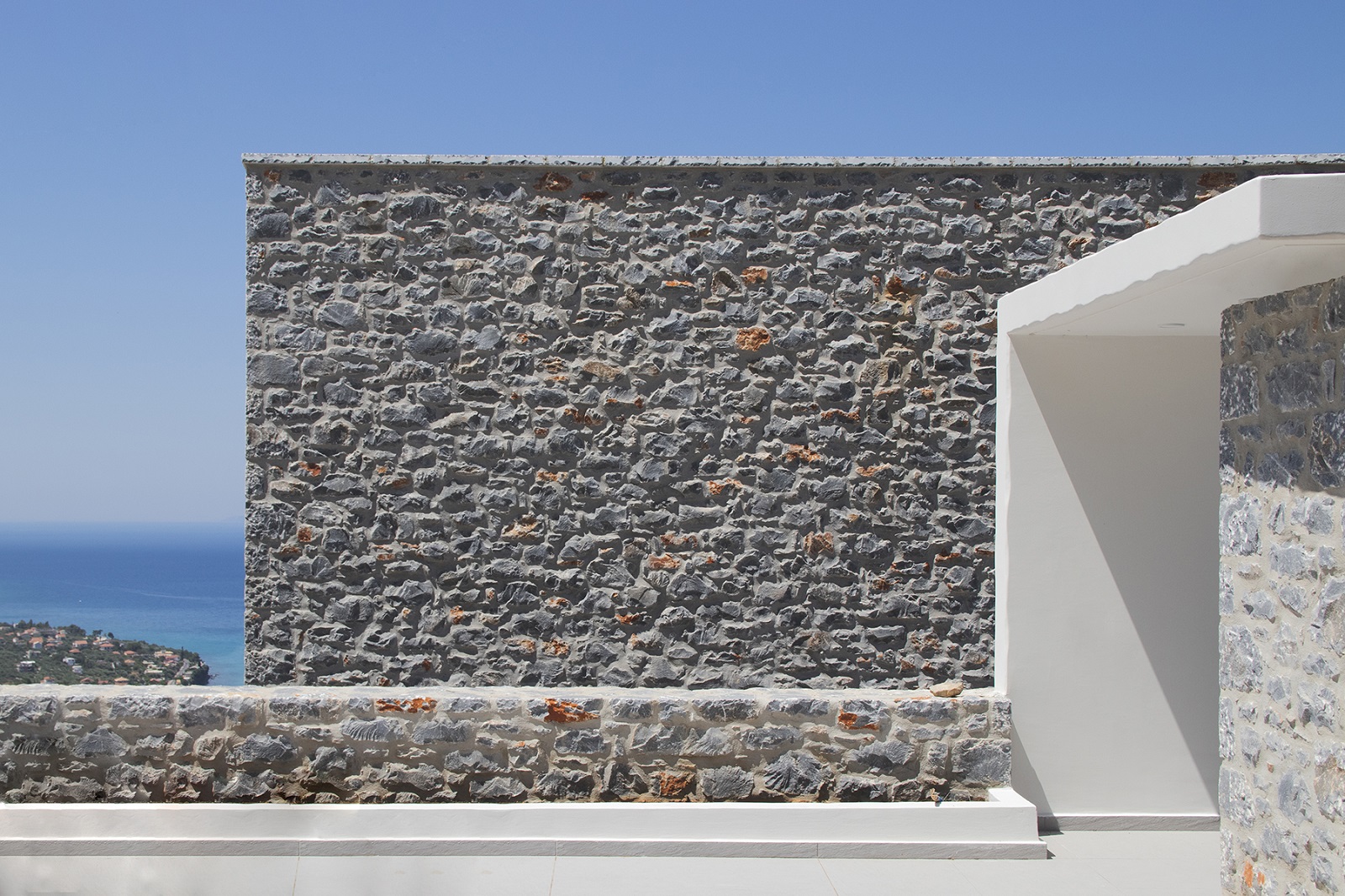 Local Mani stone, stone floors and soft color tones are used, which through simplicity and harmony sharpen the senses, in the same way they are sharpened when strolling through nature. The interior follows a minimal aesthetic, which is based on the aforementioned principles.