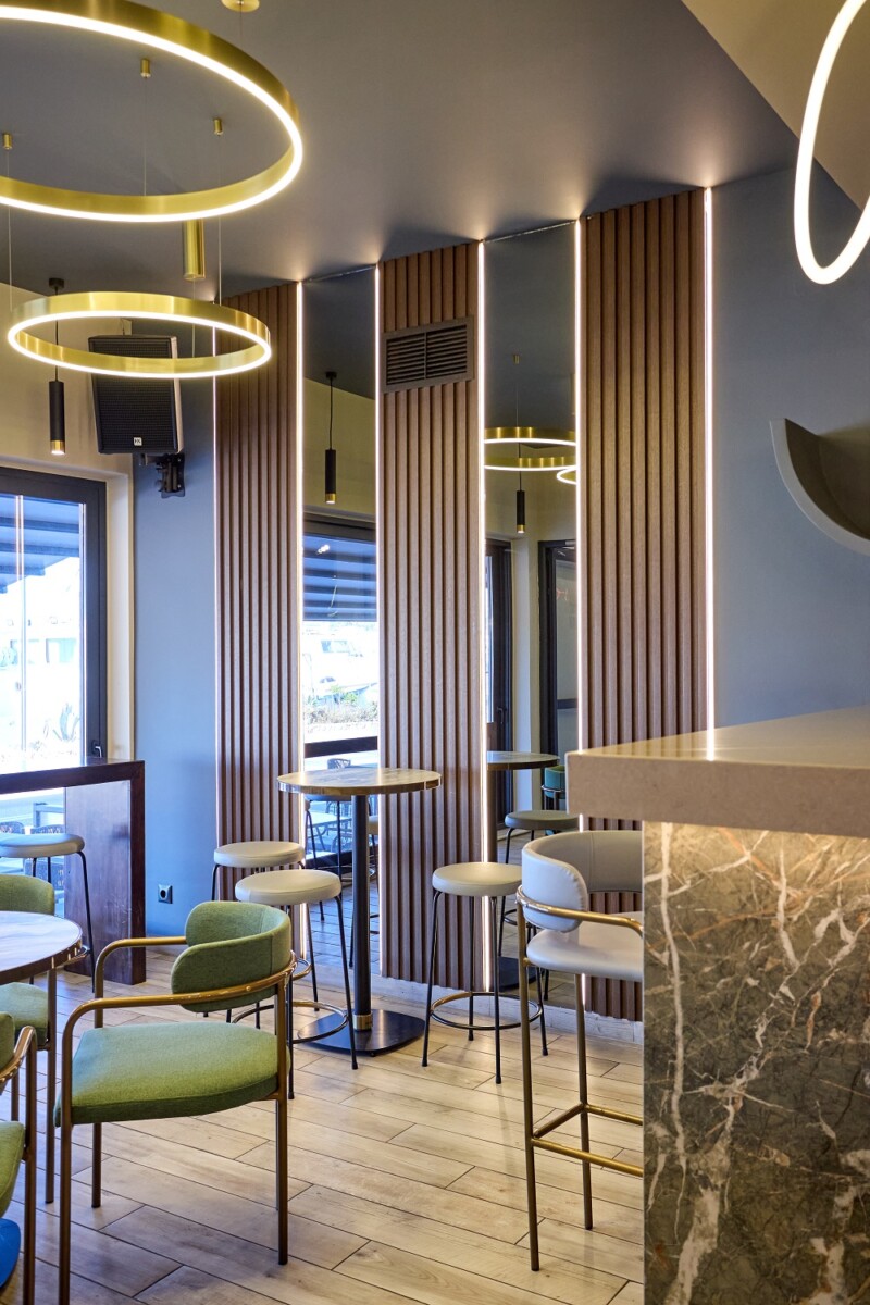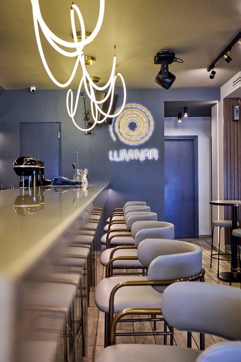 Τίτλος έργου: «LUMINAR» lounge coffee & bar, Τυπολογία: Ανακαίνιση καταστήματος εστίασης, Τοποθεσία: Χίος – Ελλάδα, Αρχιτεκτονική μελέτη εσωτερικών χώρων – Μελέτη φωτισμού – Επίβλεψη κατασκευής: Design Box Architects, Ομάδα μελέτης: Λευτέρης Μαρτάκης + Αγγελική Λω, Κείμενο παρουσίασης: Design Box Architects, Φωτογραφίες: Γιώργος Κακίτσης