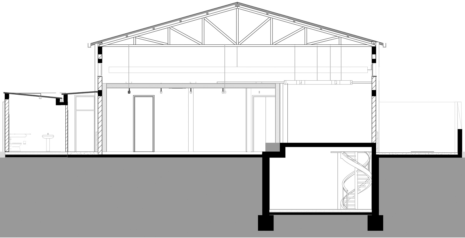 “Στον εσωτερικό χώρο, η εμφανής οροφή έχει πρωταγωνιστικό χαρακτήρα, αφού η ανάμνηση της πρώην βιομηχανικής χρήσης του κτιρίου ήταν ο λόγος που ώθησε τους αρχιτέκτονες σ’ αυτή την απόφαση”.