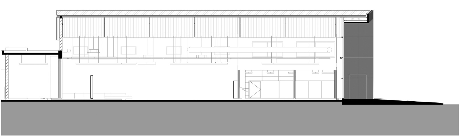 The front façade has been completely reimagined, half escaping the concrete envelope and providing the illusion of a solid corten block, when approaching from the west and the other half is dominated by a curtain wall that opens visibility between the public busy street and the gym’s main space.
