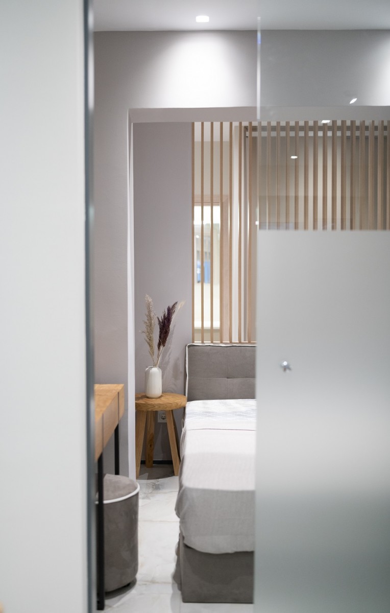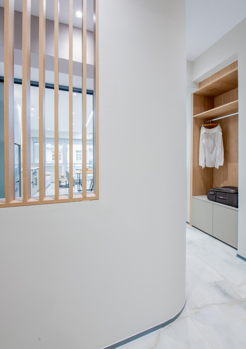 Τίτλος & Τύπος έργου: Μετατροπή στενομέτωπου ιατρείου σε σύγχρονο διαμέρισμα, Τοποθεσία: Οδός Παλαιών Πατρών – Θεσσαλονίκη, Αρχιτεκτονική μελέτη: Θωμά Ράνια (Αρχιτέκτων Μηχανικός), Σχεδιασμός – Επίβλεψη – Κατασκευή: Parallel Projects, Υπεύθυνος επίβλεψης και κατασκευής: Φελεκίδης Βαγγέλης (Πολιτικός Μηχανικός), Χρονολογία σχεδιασμού: 2020, Χρονολογία κατασκευής: 2021, Κείμενο παρουσίασης: Ράνια Θωμά, Φωτογραφίες: Αλέξανδρος Γούλας