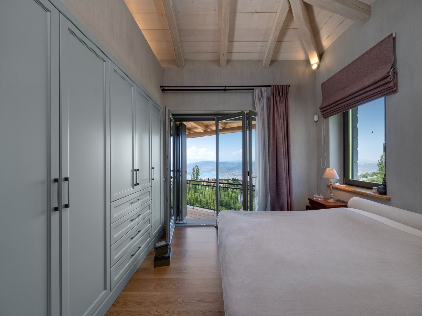 At the first floor we can find the bedrooms which enjoy the beauty of the open roof as well as their lofts with the warmth they offer during their use, especially to the children of the family. The corner windows of the kitchen and the one bedroom open the residence to the east overlooking the village and Pelion, while the other openings invite users to enjoy the unobstructed view to Volos and the Pagasitikos.