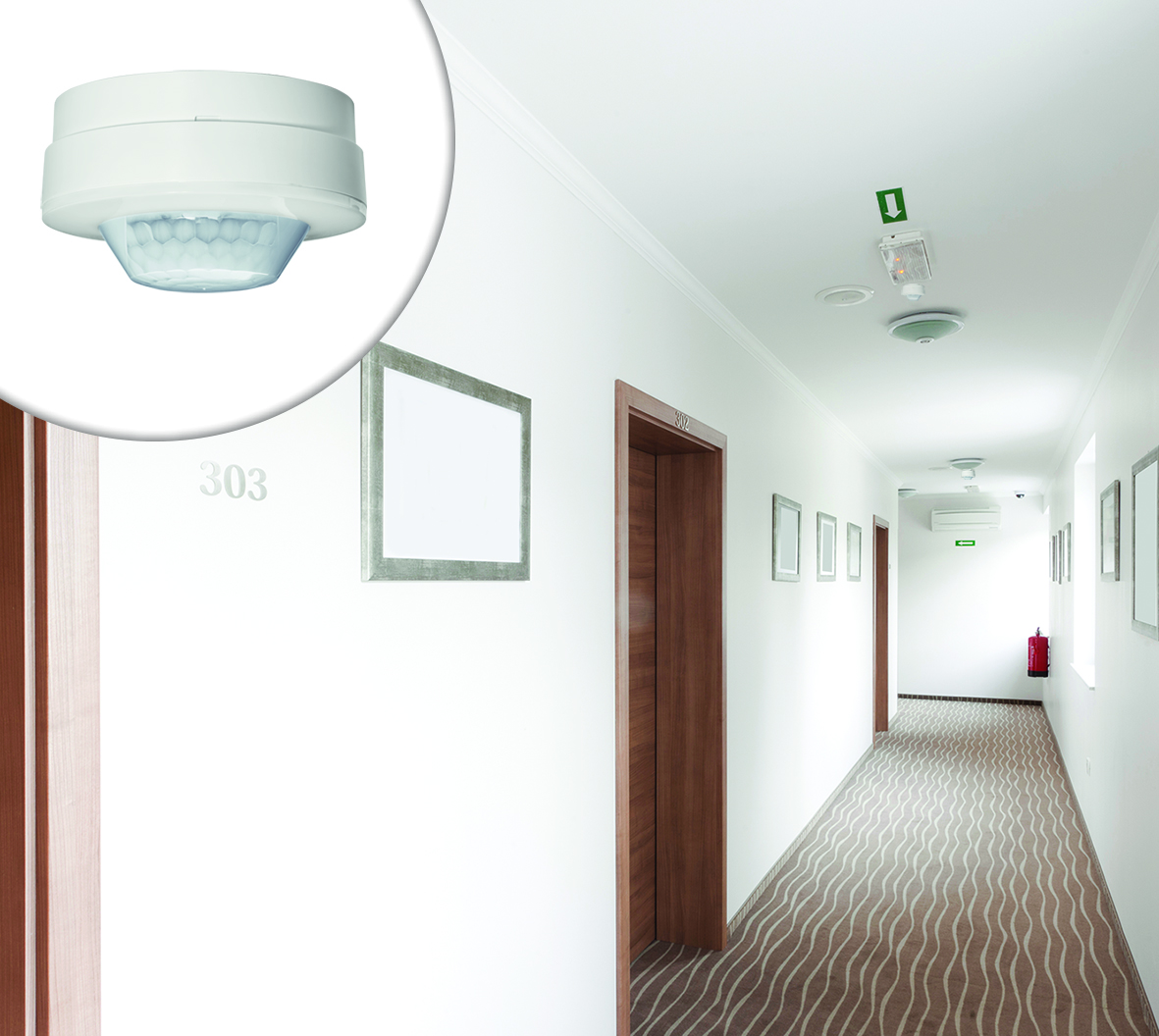 Ακόμη, στα δωμάτια του ξενοδοχείου οι ανιχνευτές παρουσίας σε συνδυασμό με λύσεις αυτοματισμού KNX μπορούν να συμβάλλουν σε πιο αποδοτική διαχείριση της ενέργειας, π.χ. σβήνοντας τον κλιματισμό όταν το δωμάτιο μένει κενό.