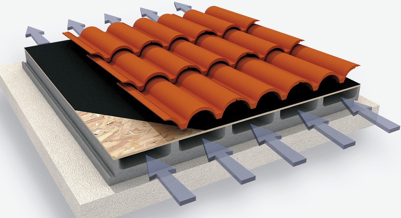 Ο αέρας αυτός κινείται ανάμεσα στο κεραμίδι και τη θερμομόνωση και απάγει θερμότητα από το κεραμίδι δηλαδή το «δροσίζει». Ο θερμός αυτός αέρας ανεβαίνει φυσικά προς τον κορφιά ο οποίος πρέπει να είναι κατάλληλα διαμορφωμένος για να επιτρέπει στον αέρα να διαφύγει, και αποβάλλεται στην ατμόσφαιρα παίρνοντας μαζί του όλη αυτή τη θερμότητα που δεν θέλουμε να περάσει στο χώρο μας.