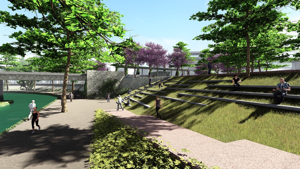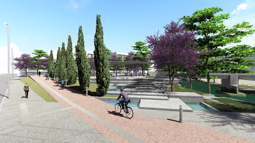 • Δημιουργείται μικρό αμφιθέατρο – χώρος ξεκούρασης επίσης δίπλα από τη γέφυρα.