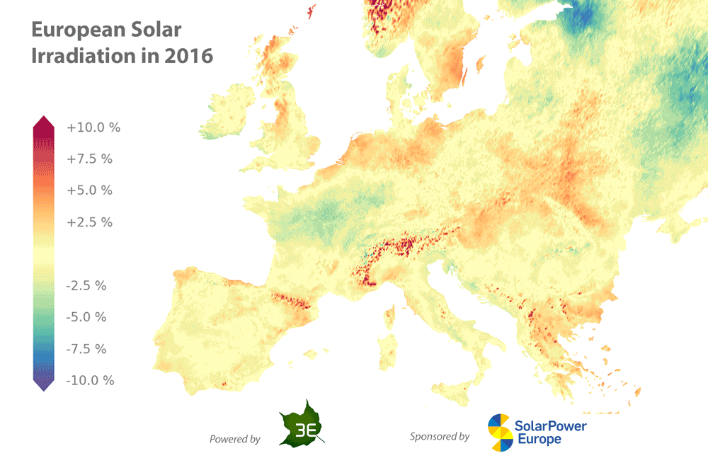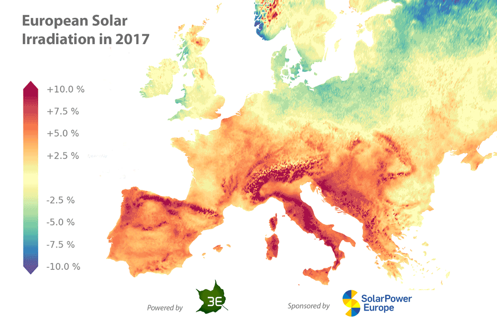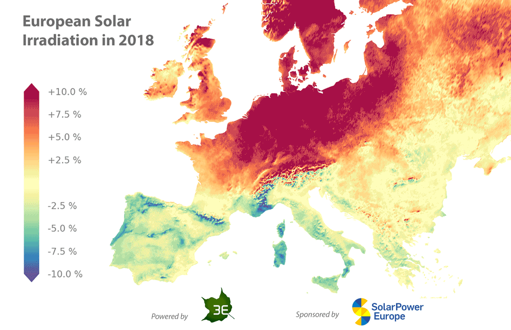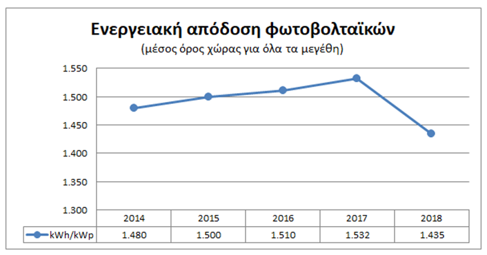 Ενώ τα προηγούμενα χρόνια υπήρχε μια αύξηση της ενεργειακής απόδοσης των φωτοβολταϊκών στη χώρα μας, το 2018 παρατηρήθηκε μια μέση μείωση 6,34%. Η μείωση αυτή ερμηνεύεται αν δει κανείς την ακτινοβολία που έφτασε στη χώρα μας τα έτη 2016-2018. Ενώ στη νότια Ευρώπη είχαμε μείωση της ακτινοβολίας το 2018, είχαμε αντίθετα σημαντική αύξησή της στις βορειότερες χώρες.