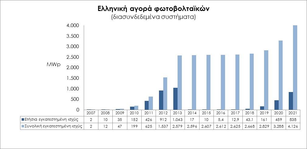 Συνολική ισχύς διασυνδεδεμένων φωτοβολταϊκών ως και το 2021