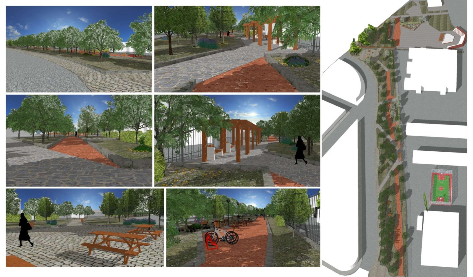 • δημιουργία διαδρόμων περιπάτου με φύτευση και βοτανόκηπους μπροστά στα σχολεία (2ο και 7ο Δημοτικό, 4ο Γυμνάσιο και 2ο Λύκειο),