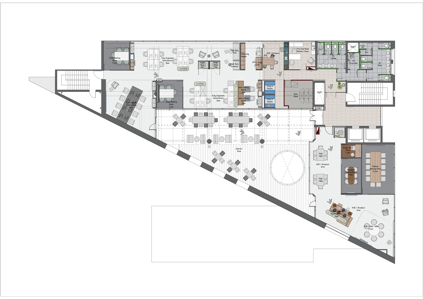 Loose Furniture: ASSET (Pedrali – Haworth – Forma 5 / Pattio – Buzzi Space – Noti), Lightings: MP ILLUMINATION – MUUTO – VIBIA, Joinery: MVTS, Flooring (Outdoor): ROUSSETOS, Acoustic applications: THE CONSQUARE, Plants: PURE FLOWER, Graphics applications: OPTICON
