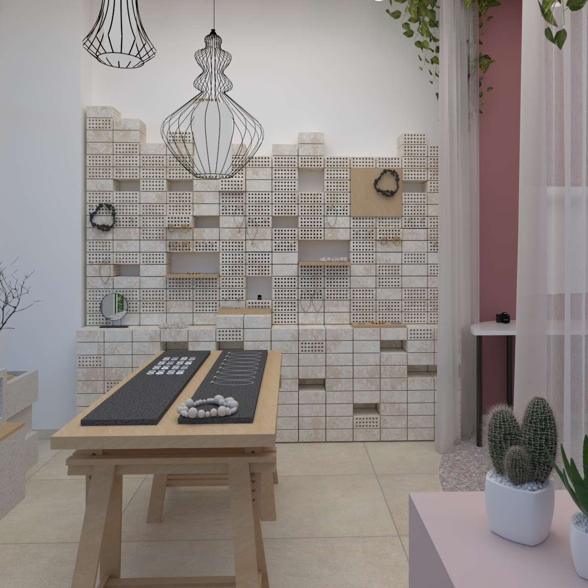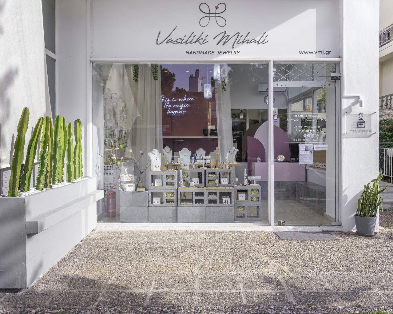 Τίτλος έργου: Vasiliki Mihali Showroom, Τυπολογία: Ανακαίνιση showroom χειροποιήτων κοσμημάτων, Τοποθεσία: Άνω Γλυφάδα – Αθήνα, Interior design – Επίβλεψη – Κατασκευή: South Constructions + Design, Έτος υλοποίησης: 2021, Κείμενο παρουσίασης – Φωτορεαλιστικές απεικονίσεις: South Constructions + Design, Φωτογραφίες: Venelin Atanasov