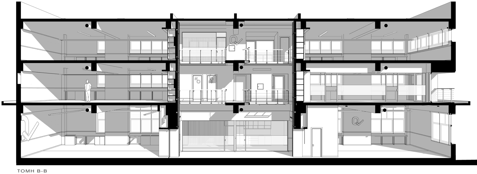 Έγιναν εκτεταμένες αποξηλώσεις για να γίνει σωστή εκτίμηση της υφιστάμενης κατάστασης του κτιρίου και των αναγκαίων παρεμβάσεων. Από την προηγούμενη χρήση διατηρήθηκαν: το εσωτερικό κλιμακοστάσιο, ο ανελκυστήραςεμπορευμάτων και οι μεταλλικοί διάδρομοι οι οποίοι διέσχιζαν το αίθριο με τα κιγκλιδώματά τους.