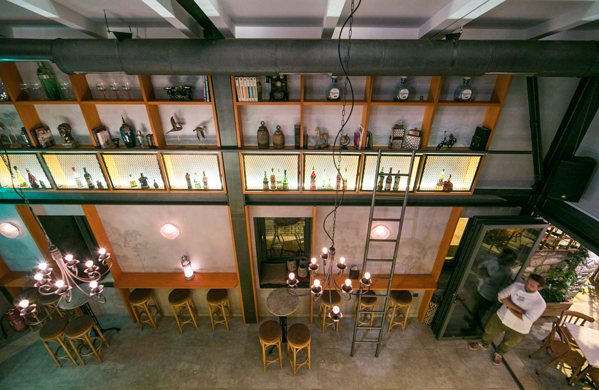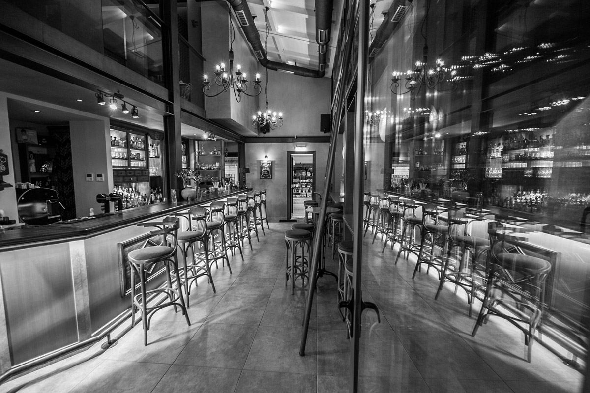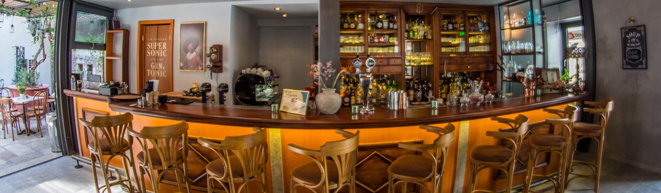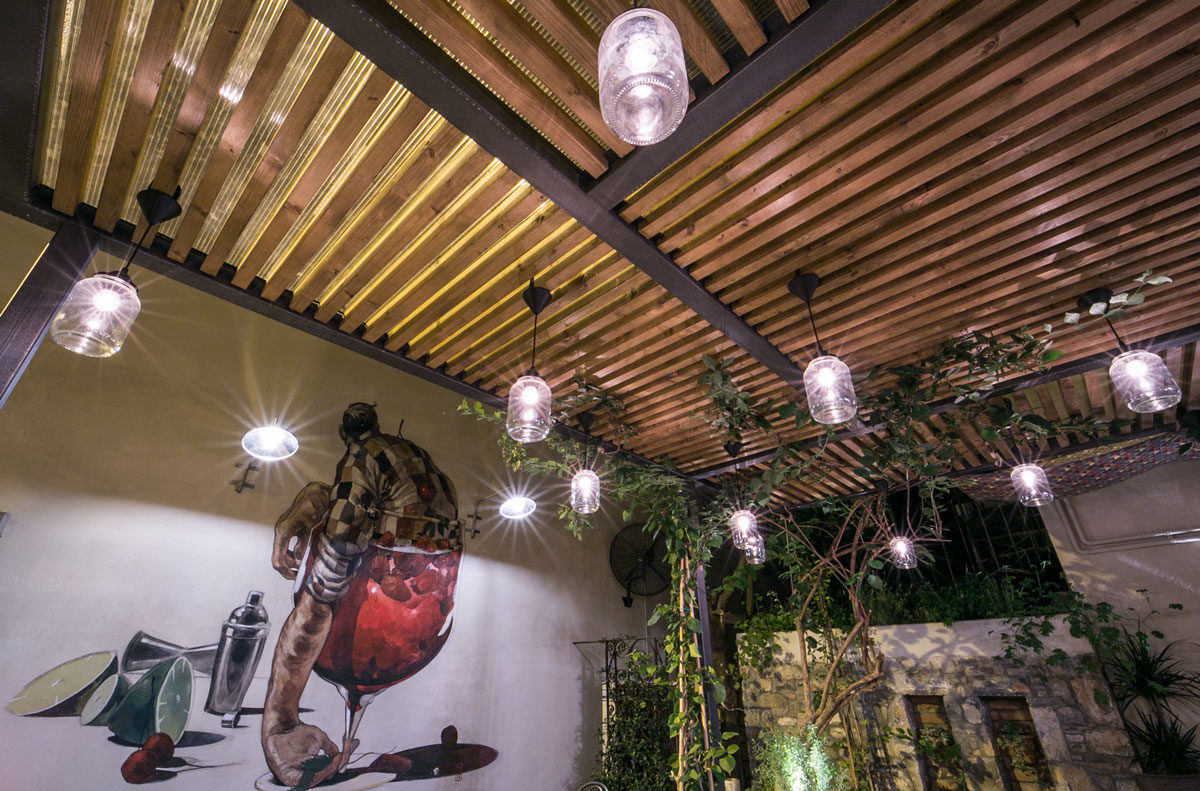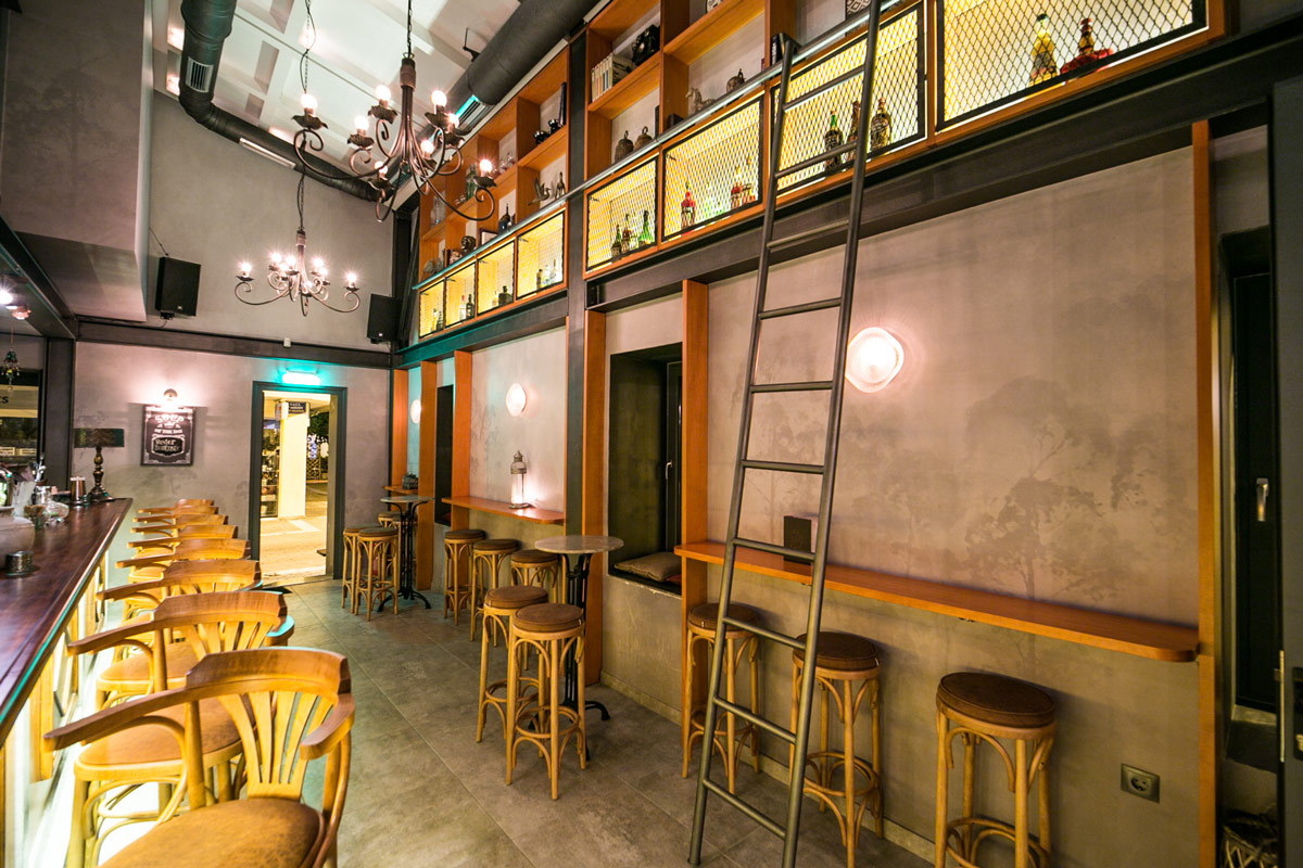 Με απώτερο στόχο την διατήρηση των αρχιτεκτονικών γραμμών του αναπαλαιωμένου κτιρίου, έγινε επέμβαση στους ήδη υπάρχοντες κανάβους και διαμόρφωση του εσωτερικού χώρου του μπαρ.