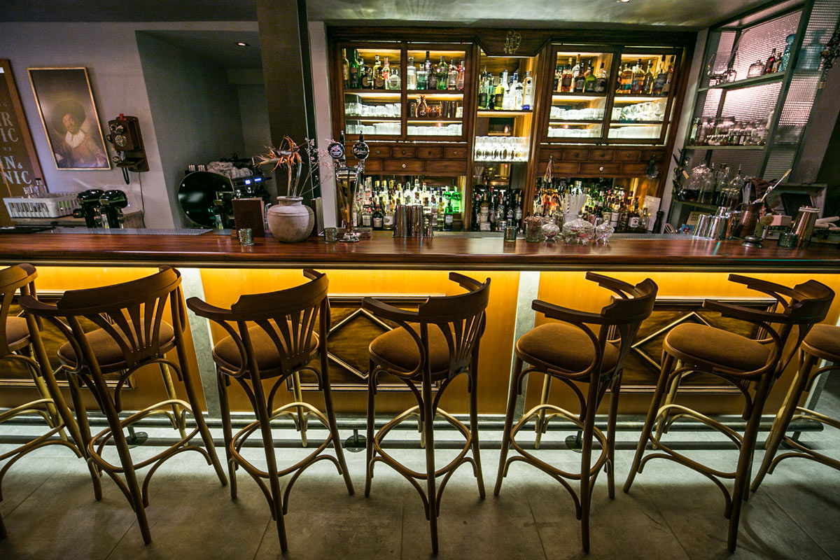 Για να δοθεί στον χώρο η διαχρονικότητα που αντιπροσωπεύει το ίδιο το όνομά του μπαρ, πραγματοποιήθηκαν επενδύσεις με πατιναρισμένα ξύλα, καφέ δέρματα, vintage φωτιστικά, καθώς και διακόσμηση με μία ταπετσαρία προερχόμενη από watercolor πίνακα του 1850.