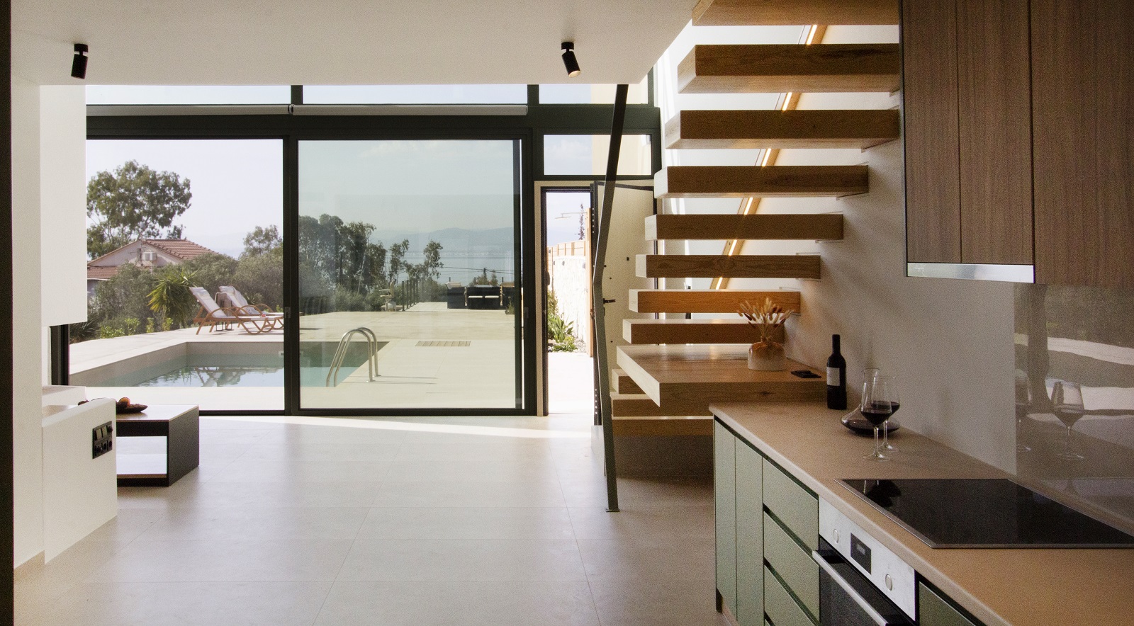 Τίτλος έργου: ENDOΓEIOS, Τυπολογία: Ανέγερση τριών υπόσκαφων κατοικιών για τουριστική εκμετάλλευση, Τοποθεσία: Σκάλωμα – Λουτράκι Κορινθίας, Aρχιτεκτονική μελέτη – Επίβλεψη – Κατασκευή: Κατραμαδάκη Βάσια, Μελέτη φωτισμού: Αtelier Luce Lighting | Κατραμαδάκης Πάνος, Στατική μελέτη Τσιλιμπάρης Ευθύμιος, H/M μελέτη: Γέρου Δημήτρης, Αρχιτεκτονική τοπίου: Γεωργία Παπαδοπούλου, Τοπογραφική μελέτη: Τσουτσάνης Αλέξανδρος, Συνολική έκταση κτιρίων: Κατοικία 1 = 130m² | Κατοικία 2 = 123m² | Κατοικία 3 = 109 m², Έτος μελέτης: 2020 – 2022, Έτος ολοκλήρωσης έργου: 2024, Κείμενο παρουσίασης – Φωτογραφίες: Κατραμαδάκη Βάσια
