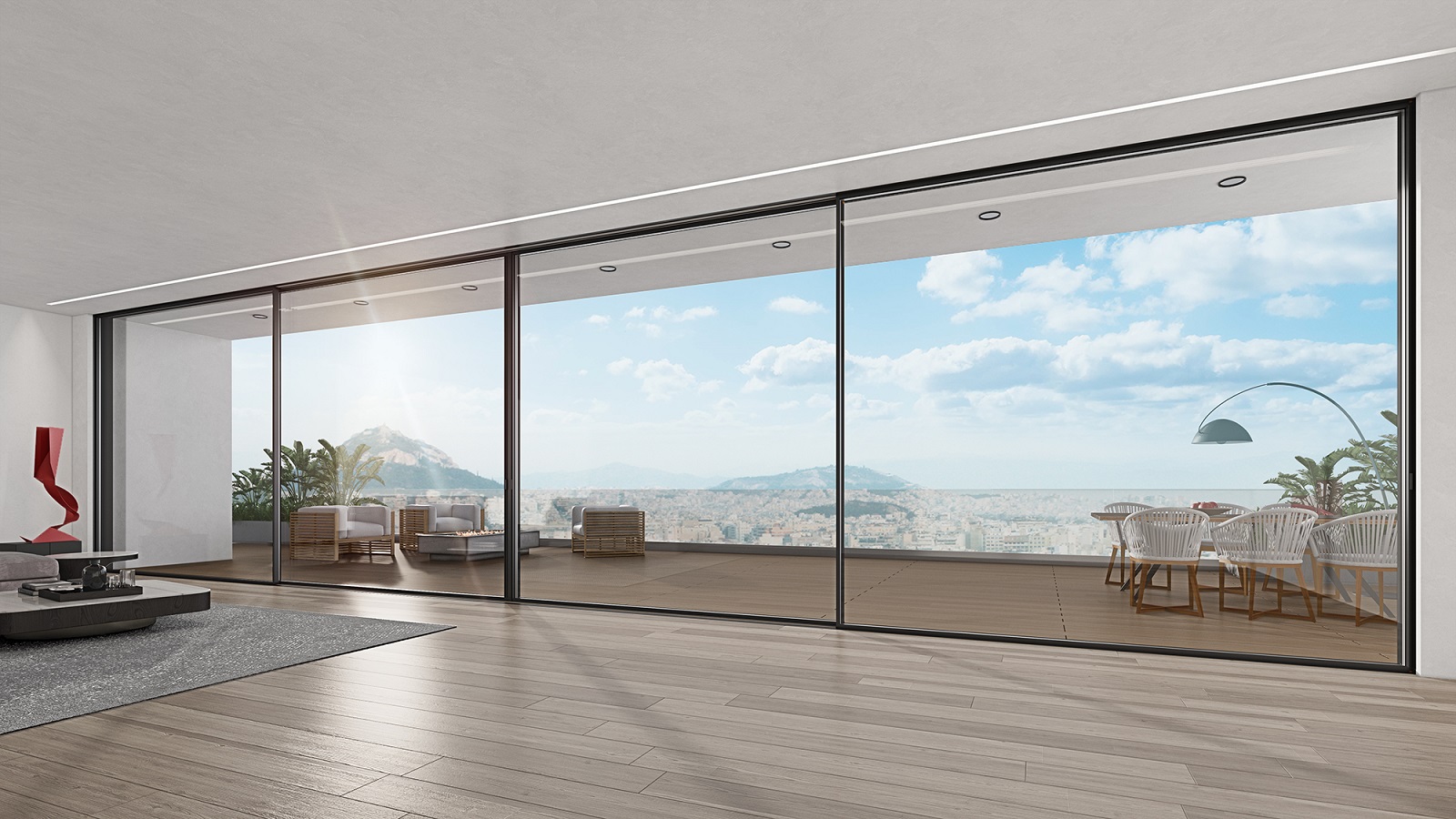 1) Ελευθερία κίνησης, ανεμπόδιστη θέα και φως χάρη στα προφίλ λεπτών διατομών.