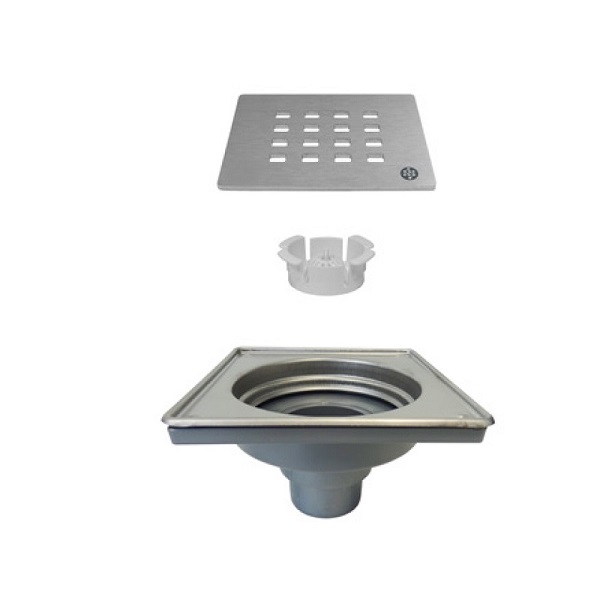 1)Τετράγωνη σχάρα με βάση για απευθείας σύνδεση σε σωλήνα κεντρικού συστήματος σιφωνιού, (για χαμηλό διαθέσιμο ύψος εγκατάστασης):