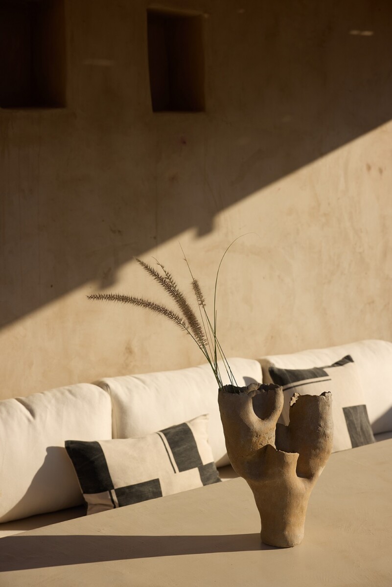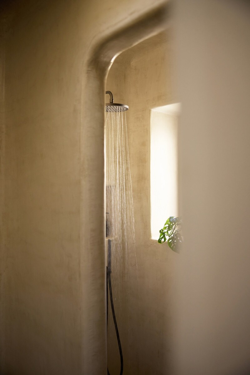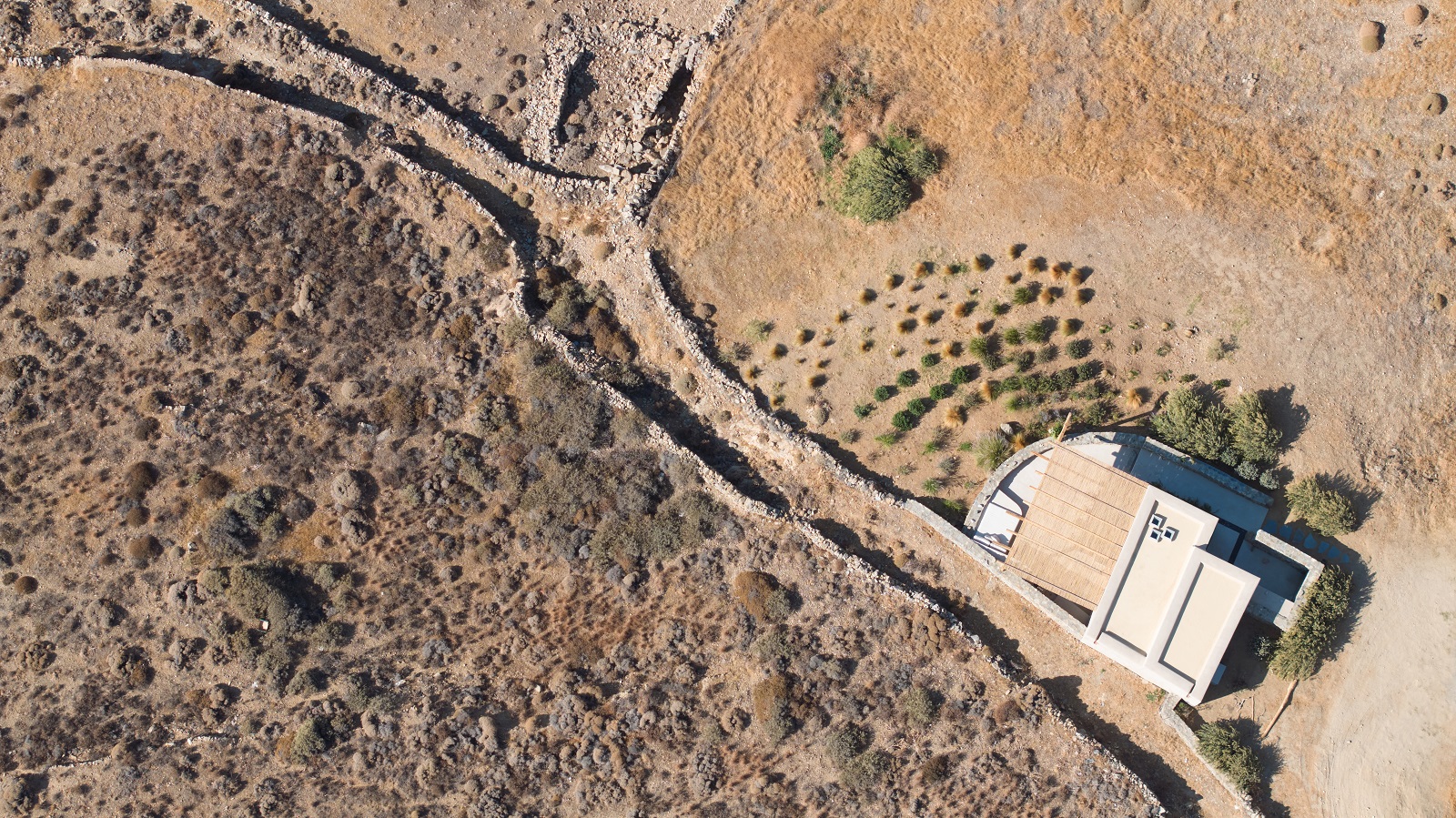 The building was coated with earthy-toned plaster, reminiscent of soil, to ensure its seamless integration into the natural landscape. This approach aligns with the traditional aesthetic of traditional cells, which were either constructed from stone or plastered in brownish hues. The low perimeter wall of the verandawas rebuilt using dry stone, retaining its characteristic semicircular shape, a reference to the courtyards of old cells.