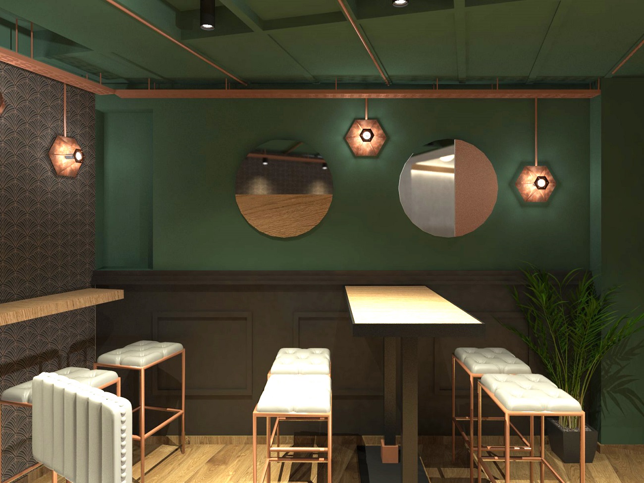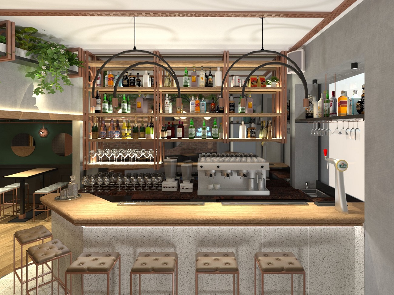 Για τον λόγο αυτόεπανασχεδιάστηκε το bar και ο χώρος του καθιστικού,προκειμένου να αξιοποιηθεί στο μέγιστο ο ήδη περιορισμένος χώρος του καταστήματος, ο χώρος να γίνει πιο εργονομικός τόσο για τους υπαλλήλους όσο και για τους πελάτες.