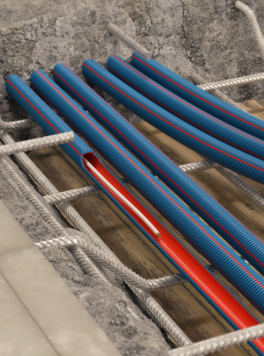 Με συνεχείς επενδύσεις στην Έρευνα και Ανάπτυξη της τεχνολογίας των πολυστρωματικών σωλήνων, η KOUVIDIS φέρνει τηνεπανάσταση για τις εγκαταστάσεις στο σκυρόδεμα με το λανσάρισμα των σωλήνων DUROFLEX PLUS. Μεταφέροντας την τεχνογνωσία της παραγωγής σωλήνων με τρία διαφορετικά στρώματα σε μικρότερες διαμέτρους (Ø20, Ø25 και Ø32), η KOUVIDIS γίνεται η 1η εταιρεία στην Ευρώπη που τολμάει μια τέτοια επένδυση διευκολύνοντας στον μέγιστο βαθμό το πέρασμα των καλωδίων.