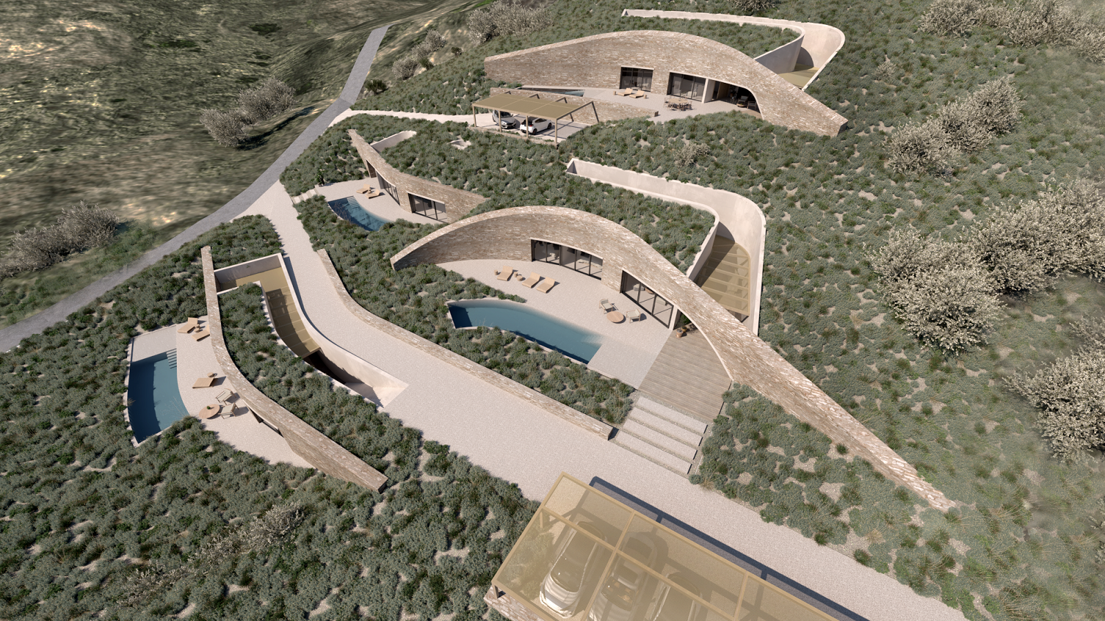 Το έργο “Kýmata”, που παρουσιάζει το αρχιτεκτονικό γραφείο Tzagkarakis + Associates, σε συνεργασία με την αρχιτέκτονα Ανθή Πυλαδαρινού, αφορά τη σύνθεση τεσσάρων υπόσκαφων κατοικιών στην νότια πλευρά του νησιού της Κρήτης. Η ιδιαίτερη γεωμορφολογία, η έντονη κλίση, η θέα στον όρμο της Μεσσαράς αλλά και τα χρώματα του τοπίου ήταν οι βασικοί παράμετροι που καθόρισαν τον τρόπο με τον οποίο υλοποιήθηκε ο σχεδιασμός στο οικόπεδο αυτό.